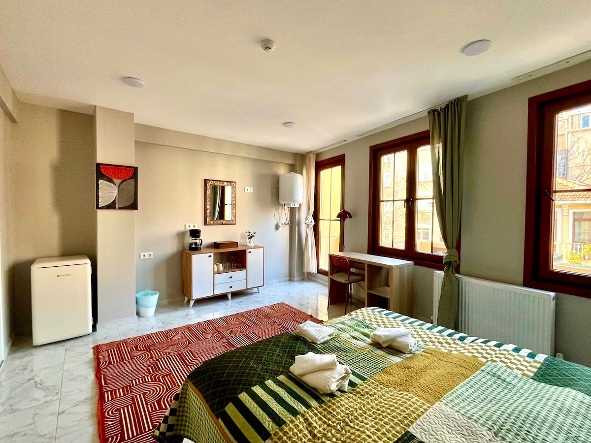 This studio apartment is located at the heart of city’s coolest neighbourhood ''Moda'' walking distance to Kalamış Coast, shops, restaurants, famous bars, markets and all transportation. Just a 5 minutes walk to the famous “Boğa Heykeli”. - Designed with taste, this apartment will be ideal for anyone who is seeking comfort, a “home like” atmosphere, accessibility to major tourist attractions. -Self check-in is also available using the password. -The sofa is prepared for the third person.