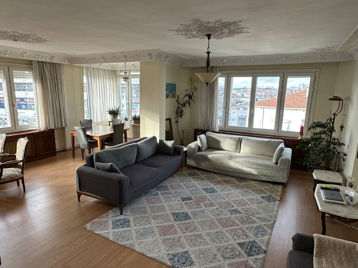 At the heart of Moda the 180 m2(1930sq ft) apartment is located on Moda Avenue where you are at the middle of everything. You are a few steps away from all the historic and fun activities. Moda avenue is always vibrant few steps to all transport ,ferries and All the restaurants on the Moda Avenue. Having views of historical peninsula from balcony you can enjoy the beautiful. MEDICANA hospital 6 mins by car Acıbadem Hospital 12 mins by car. ✅ 3 bedroom ✅Air condition ✅Full kitchen Sets