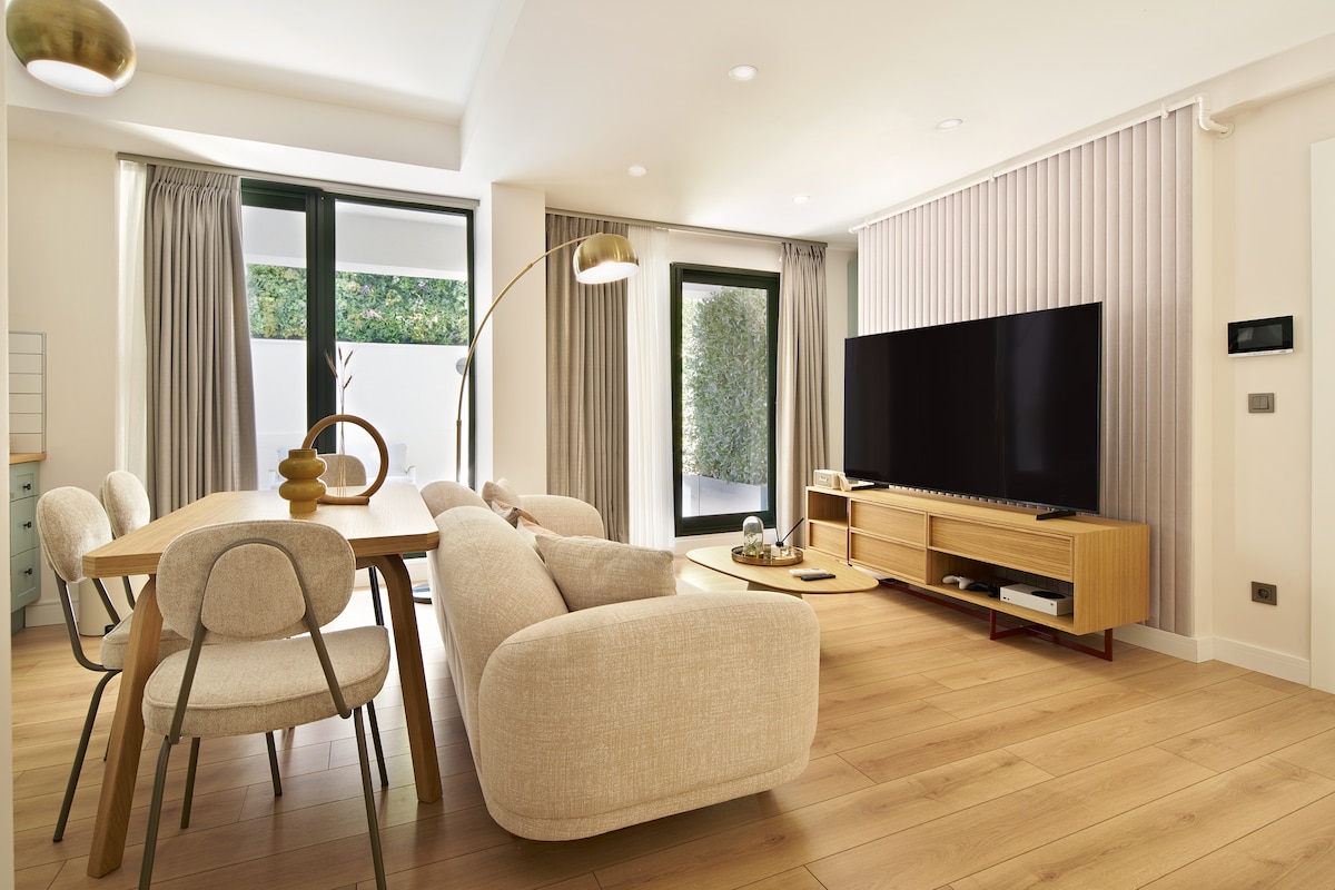 Our apartment offers comfortable accommodation for up to four guests with two bedrooms. In the spacious living room, you can enjoy a movie night, play Xbox, or listen to music with the Marshall sound system. The open kitchen, bright bathroom, and practical amenities make it suitable for both short and long stays. The most enjoyable space is the terrace, decorated with seating areas—perfect for sipping your coffee or having pleasant evening conversations accompanied by music.