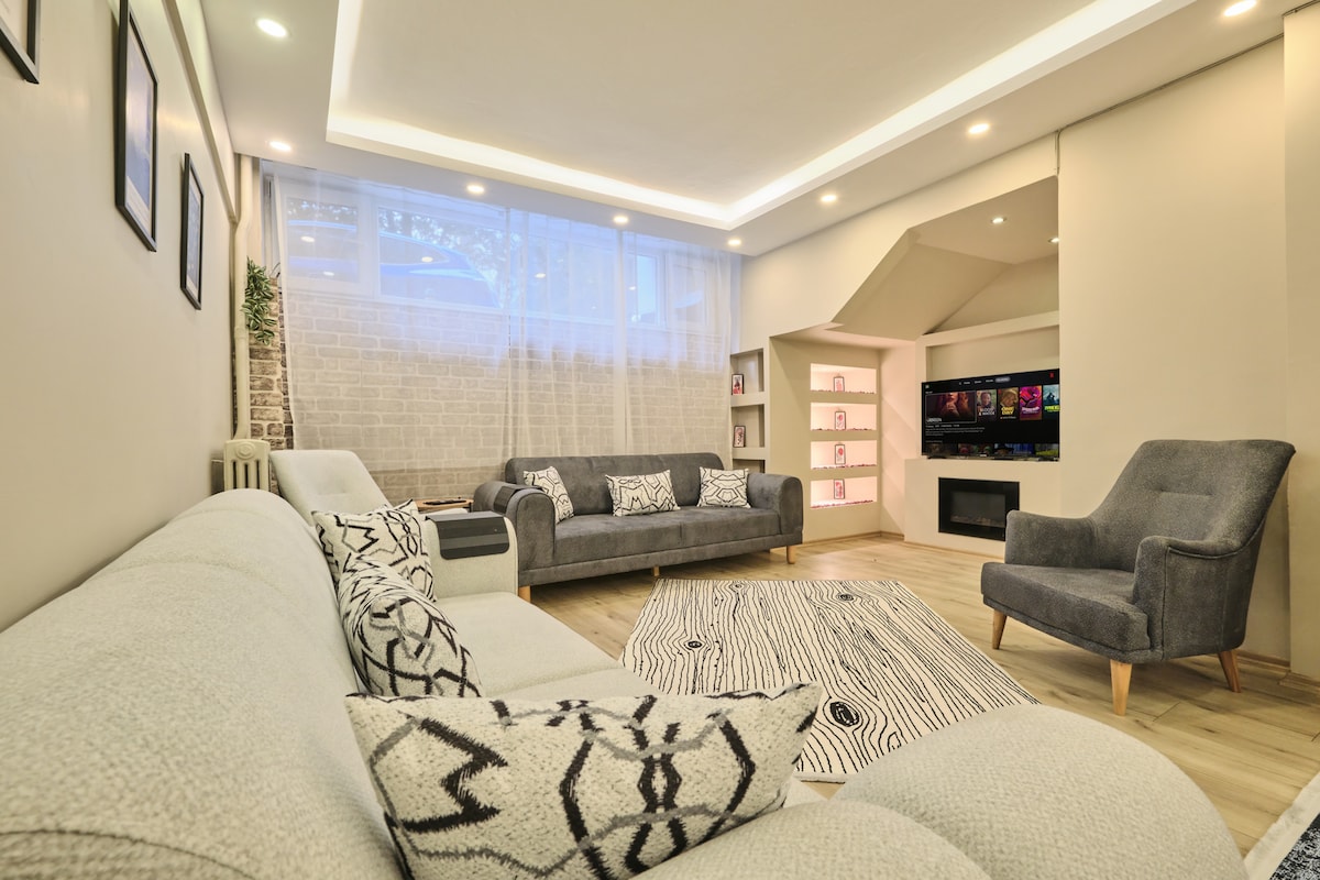 Modern Minimalist 3BR flat in a quiet street in Moda, Kadıköy. Includes 3 double-size bedrooms, a cozy living room, an open-plan kitchen, 2 bathrooms, and a huge terrace with Kadıköy city views. Fully equipped with high-speed fiber internet, Smart TV, dishwasher, washing machine, iron, vacuum, full kitchenware, elevator, and all essentials. Just 15 mins to metro, ferry, and transit. Perfect for families, groups, or remote workers seeking a stylish and central stay in Istanbul.