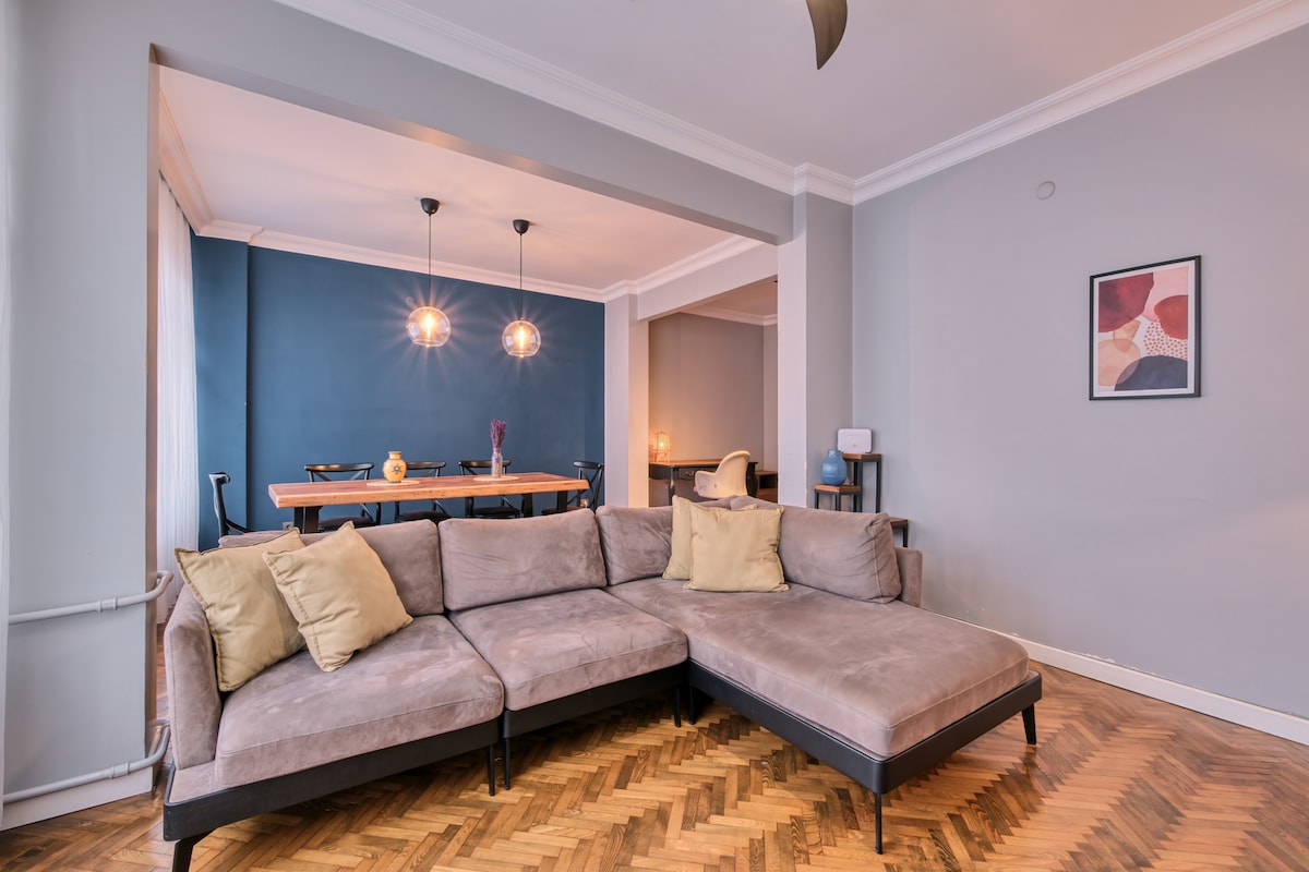 Modern flat in the heart of Moda, Kadıköy with fast access to public transport. Surrounded by fine dining, cafés, shops, and entertainment, everything is within walking distance. Located on the first floor and features 2 bathrooms. Fully equipped with high-speed internet (300 Mbps), dishwasher, washing machine, fridge, Smart TV, vacuum, iron, coffee machine, and kitchen tools to make you feel at home.