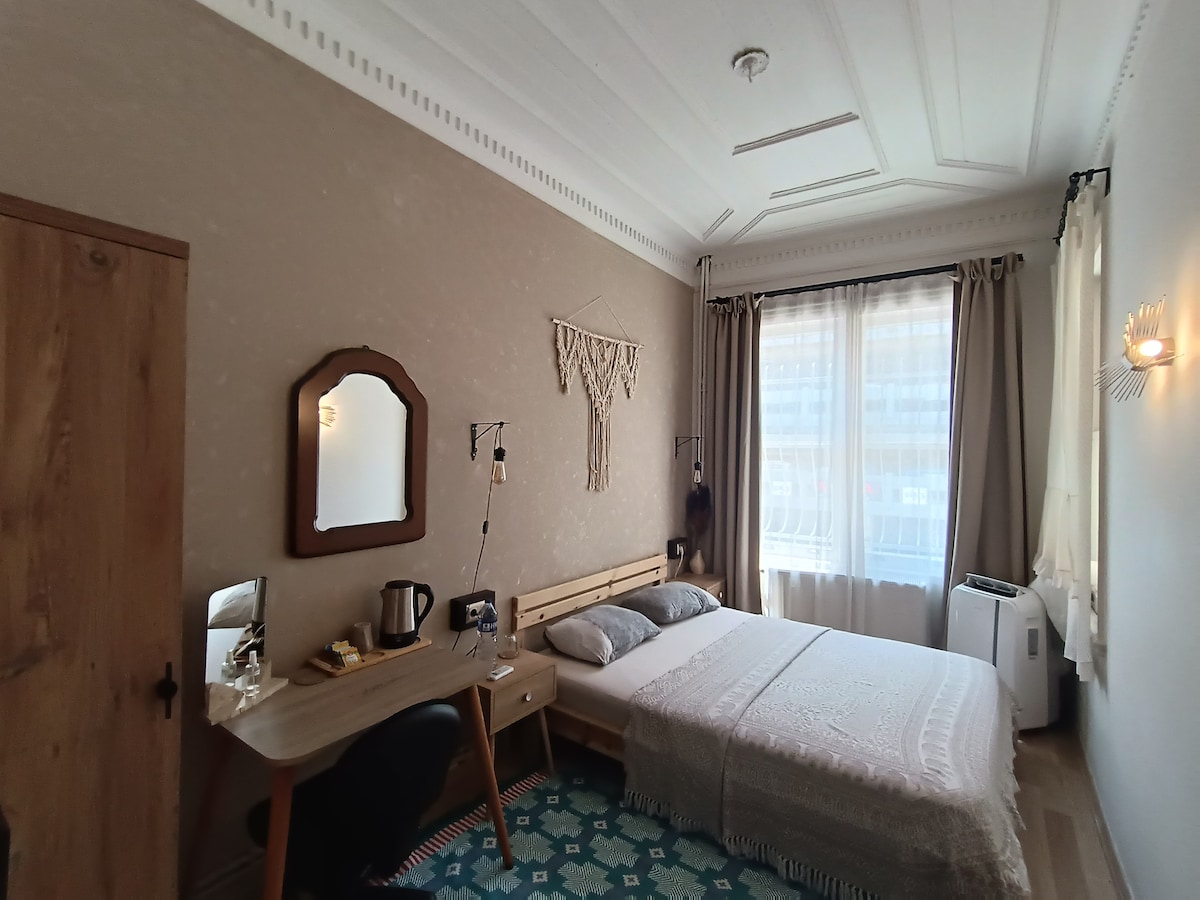 In order to offer our guests an unforgettable accommodation experience, we have restored a 130-year-old historical building in a stylish and comfortable way. Please note: This room has a private bathroom, but it is not within the room but directly across from it. Attention: the floors and ceilings of our building are wooden and there may be sound passages between floors. Our building is suitable for those who prefer a peaceful stay and is not suitable for events