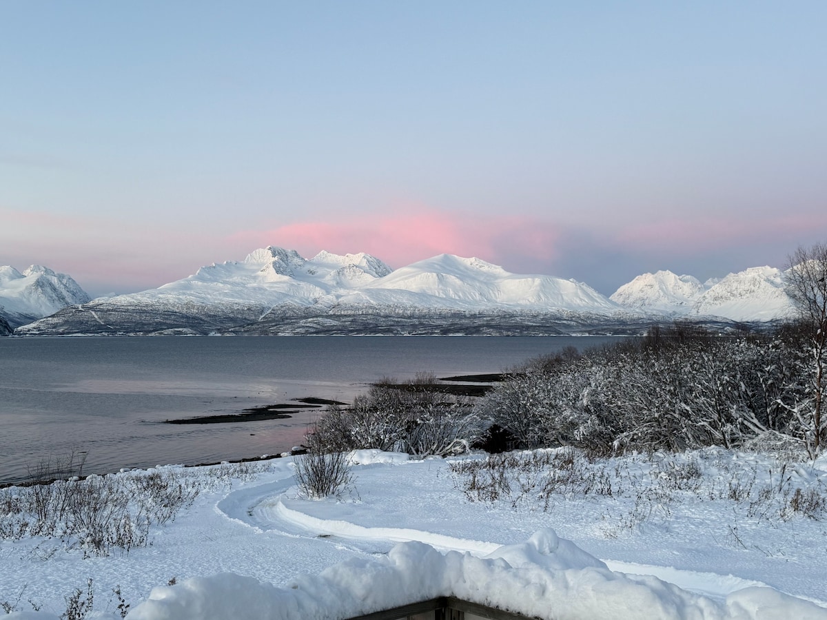 Rett ved de berømte Lyngenalpene har du et Perfekt utgangspunkt for toppturer til fots eller på ski, og et fantastisk sted å trekke seg tilbake og nyte roen fra fjell, sjø og natur. På sommerkveldene veksler sola på å gjemme seg og titte frem bak lyngsalpene mot nordvest før midnattsolar står i full blomst over sjøen litt etter midnatt. På vinteren har du perfekte forutsetnigner for å se nordlys slik du aldri har sett det før, eller gå noen av verdens fineste toppturer.