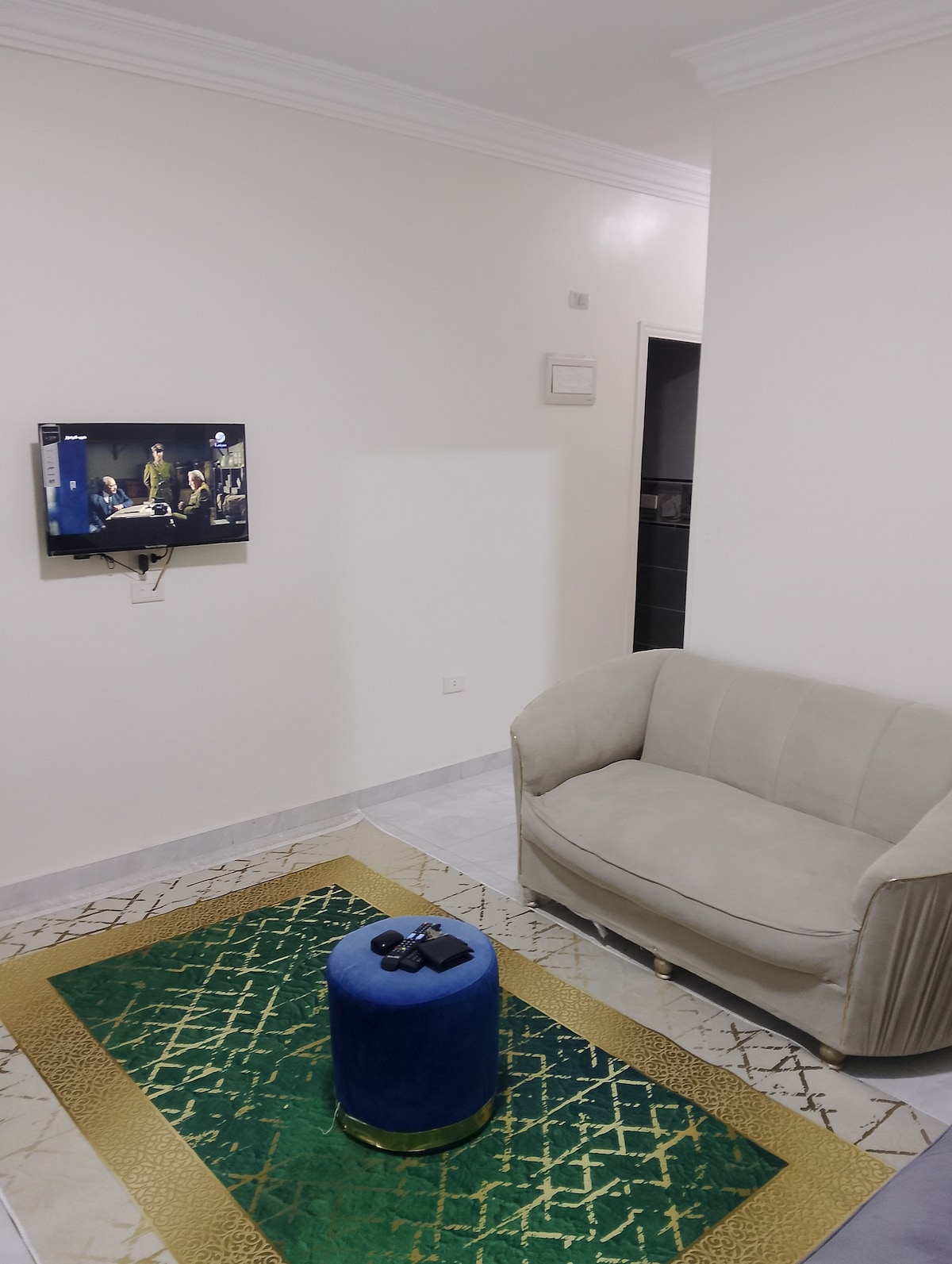 Our Nice hotel apartment offers 3 bedrooms, kitchen, hall and 2 bathrooms we're very near to the public services directly on the road, very nice and quiet place and the apartment is new and everything in the apartment is not yet used, the apartment is neat and clean and very nice to stay and relax, the AC is available and also wifi and very low cost compared with the hotel rooms.