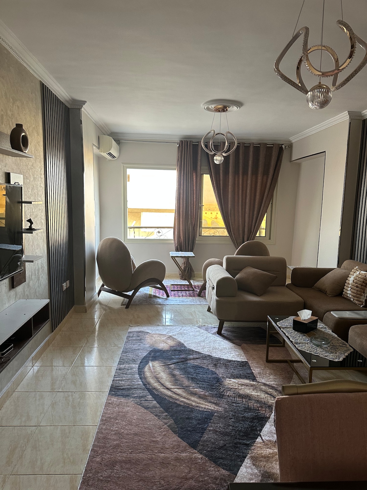 Stay in the heart of Giza with breathtaking views of the Pyramids and the Grand Egyptian Museum, visible right from your balcony. Located on a high floor, the apartment is quiet and peaceful, with modern design blended beautifully with ancient touches. The building has two elevators, and downstairs you’ll find a hypermarket, bakery, and groceries. Easy to reach and close to all major attractions, this is the perfect mix of comfort, history, and convenience.