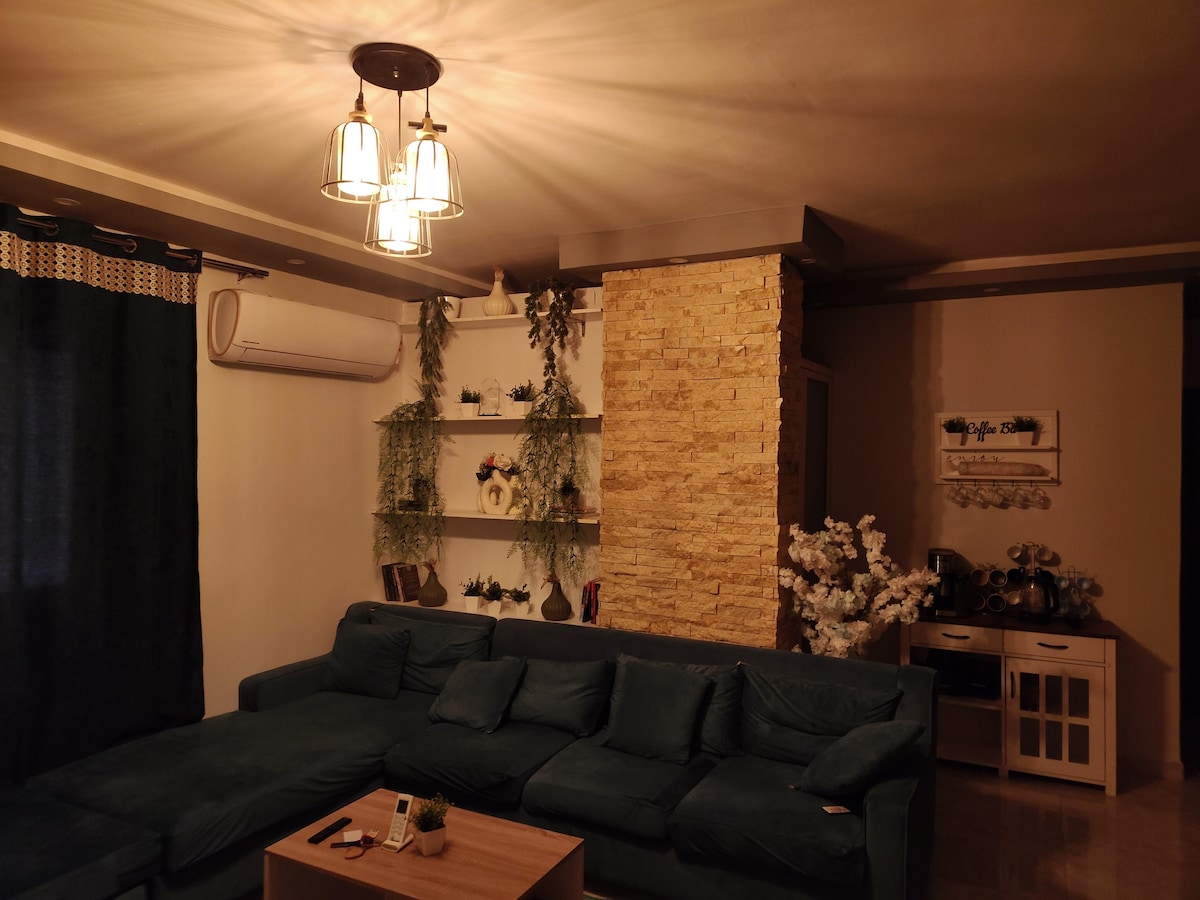 An economy option yet cozy, stylish and hygienic. A furnished apartment in Sheikh Zayed city, Egypt where there are no crowds and quality services are available everywhere. The apartment is located in a medium class local residential building only 30 minutes away from Giza Pyramids, the Egyptian Museum and other monuments. It's also surrounded by a lot of marketplaces, shopping malls and close to everything you need.