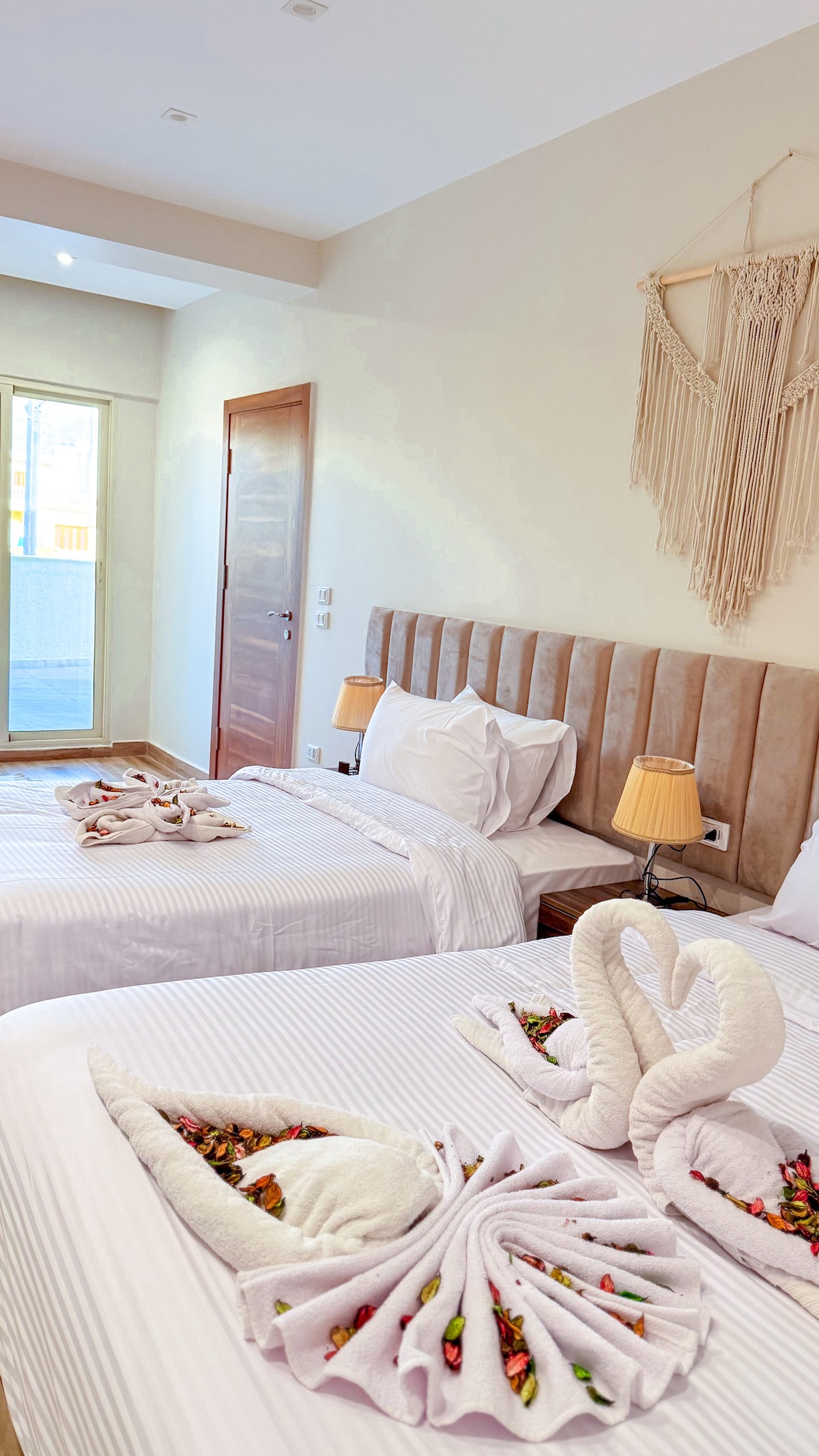 La Perlé du Nil, Boutique Hotel is in the heart of Cairo, stylish and peaceful place away from traffic, noise and pollution. It’s a great getaway on island in the Nile. 1 minute boat ride, 24h available. We have 9rooms. Each room has a private bathroom and kitchenette with Mini bar, Microwave & boiler This Relaxing Cashmere Room is perfect for 2 guests Sunny and Cozy place for families &friends with all privacy in each room. Delicious Breakfast is available for 5$ only (KINDLY CHECK HOUSE RULES)