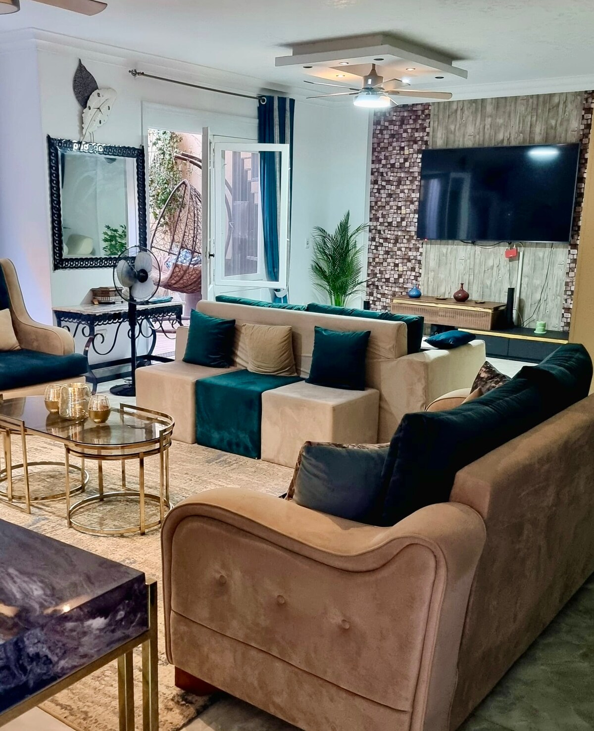 Welcome to your luxurious getaway in Giza! This modern studio is perfectly tailored to offer both style and functionality, merging contemporary design with elements inspired by the rich Pharaonic heritage. Nestled close to the Great Pyramids and the Great Museum, this space is an ideal retreat for those who appreciate comfort enveloped in culture.