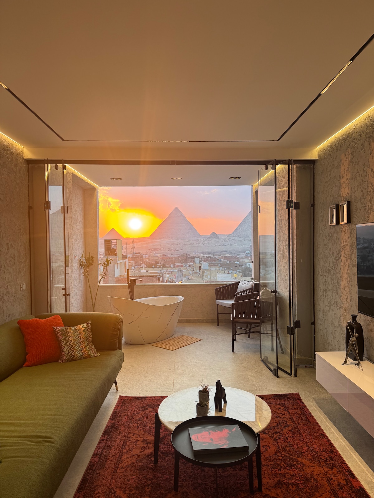 Welcome to an unparalleled living experience! This luxurious apartment offers a breathtaking, unobstructed view of the Great Pyramid of Khufu, one of the Seven Wonders of the Ancient World. Perfectly situated, this residence combines modern elegance with historical grandeur. Our apartment is maintained by an owner who has worked in the hotel industry for many years and understands what a nice stay entails.