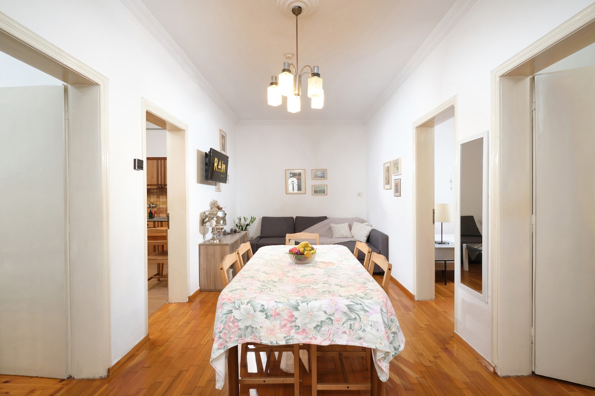 Comfortable apt right in the BEST neighborhood of the city center! -2 steps from Navarino square & Tsimiski street - the city's shopping area -6 min walk from the Waterfront & the White Tower ! -Spacious, bright with 2 queen size beds (1 bed + 1 sofa bed) -Wifi 300mbps, AC with ionizer, insect screens, water filter -Big supermarket underneath -Parking at economical rates -Recently renovated, Fully equipped Ideal for couples, single travelers, executives, friends & families with children.