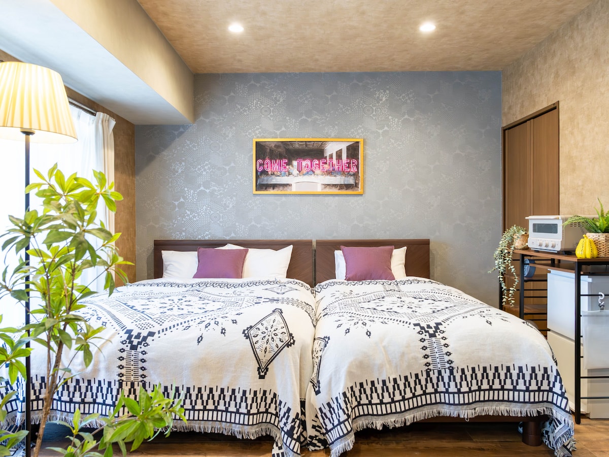 高松市中心|冬季限時優惠|步行到港口&車站|雙人床2張|最適合3–4人家庭或朋友一起入住