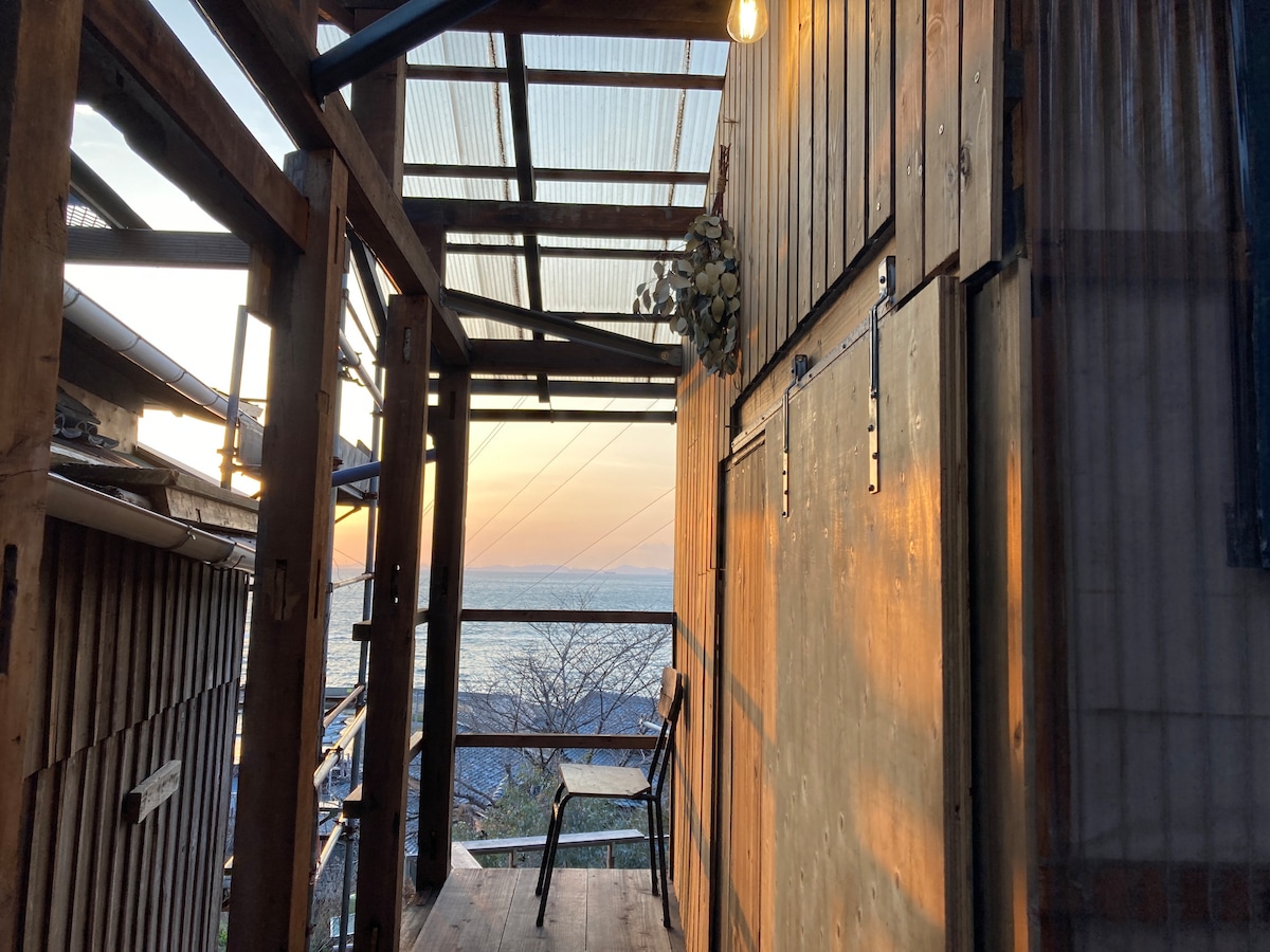 小豆島町の静かな海辺に建つ一軒家です。 海と夕陽を眺めて黄昏れる為だけに建てた家です。その為テラスの階段の段数が多く大変申し訳ございませんが決してバリアフリーとは呼べません。(荷物のお手伝い等出来るだけのことは対応させていただきます) ですが、高いテラスを登った先には瀬戸内のキラキラ輝く穏やかできれいな海と毎日顔を変える茜色の夕空が待っています。 是非、時間を忘れ非日常をご堪能ください。 ※現在ペットのご宿泊をストップさせていただいております。 ご希望の方はご予約前にお問い合わせ下さい。 室内にはテラスの階段を登って入ります。バリアフリーではありません。 小さなお子様か階段を登り降りする際は必ず大人の方がお付き添いください。 また、雨の日は階段が多い為ご不便をかけるかもしれません。 宿前の道路は舗装されていません。 ご不便をかけるかもしれませんが、ご了承下さい。 宿の周りは自然が多いため、どうしても虫がでます。窓や扉の開閉時に虫が一緒に入ることがあります。(特に夜は宿の明かりに虫が集まります)大変申し訳ございませんが、虫が苦手な方は宿泊をご遠慮ください。