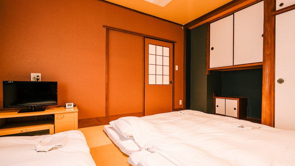 单人间【半双人床】可自由使用共享工作空间!位于金平参道旁的旅舍。