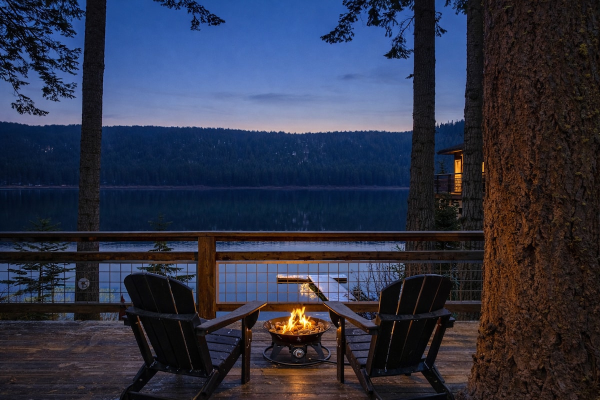 “Quiet mornings. Starry nights. Just you and the lake.” OVERVIEW: Doc Roy’s Legacy is a peaceful A-frame cabin nestled among the evergreens on the eastern shore of Fish Lake. Originally built in 1994 and thoughtfully renovated, this 888-square-foot retreat blends rustic character with modern luxury. With lakefront access, a private hot tub, updated interiors, and stunning natural surroundings, this home is ideal for couples or solo travelers seeking a serene mountain escape.