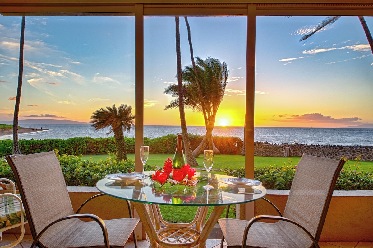 This rare ocean-front condo (LEGAL vacation Rental) is stunning! We call it a "Cruise ship view" cause you can't get any closer to the water than this! Listen to the sound of the ocean from the comfort of your home, while watching whales (Dec-April) and Hawaiian Green Sea Turtles frolicking all year long! Fully stocked, has A/C in living room and bedroom. Located a five minute walk from boats, Maui Ocean Center Aquarium, shops and restaurants at Ma'alaea Harbor!