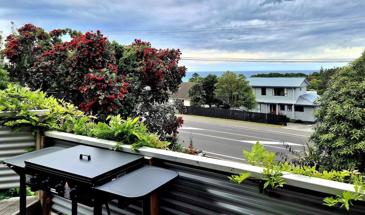 Take it easy at this unique and tranquil getaway. A beautiful private self contained downstairs flat, with private balcony with ocean and Kaikoura views. A nicely themed master bedroom with an ocean & seaside cabin feel includes a great & very comfortable double bed. A small kitchenette and dining area means you can dine if you are looking for a night in, or make an enjoyable breakfast. A new leather sofa gives you quite space to read and relax. Central to town, seals & coastal walks :)
