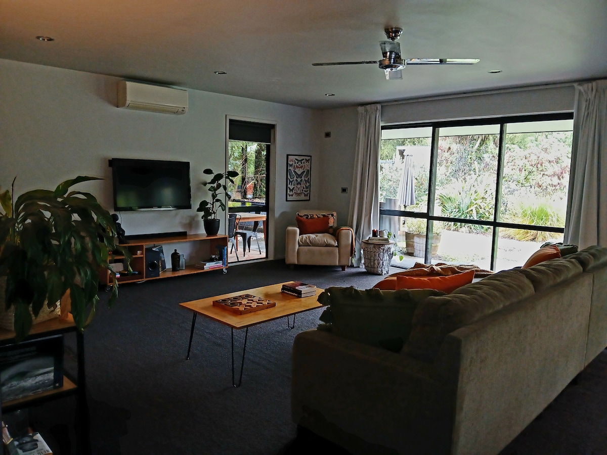 A lovely place to stay in Kaikōura with mountain views, all day sun and a private deck. Not even a 5 minute drive to town center. It is the 3rd house down a private lane, parking right by the house. Large open plan living area and good sized bedrooms. West boundary is a peaceful creek (be aware of this if you have children). A great heat pump and additional big log burner will keep you warm during the winter months with a heat distribution system to keep you warm in the bedrooms. No WiFi sorry!