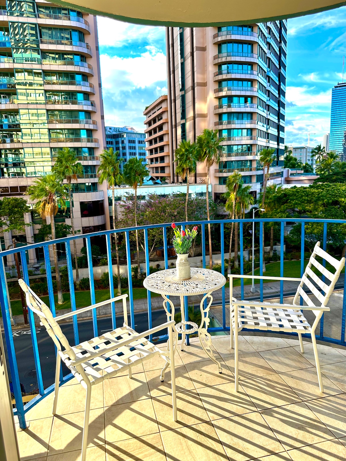 Aloha 🌺 Enjoy an unforgettable stay at our island-style retreat-just a 10-min walk to Waikiki Beach, Ala Moana, the Royal Hawaiian Shopping Center, International Marketplace, and the Hawaii Convention Center. Relax with a pool, BBQ, FREE parking, fast WiFi, AC in each room, and steps to convenient laundry. Take in pool, city, and mountain views from your private balcony. Soundproofed (anti-noise) windows to ensure peaceful and comfortable nights. Perfect for families or groups of 5–6. 🌴