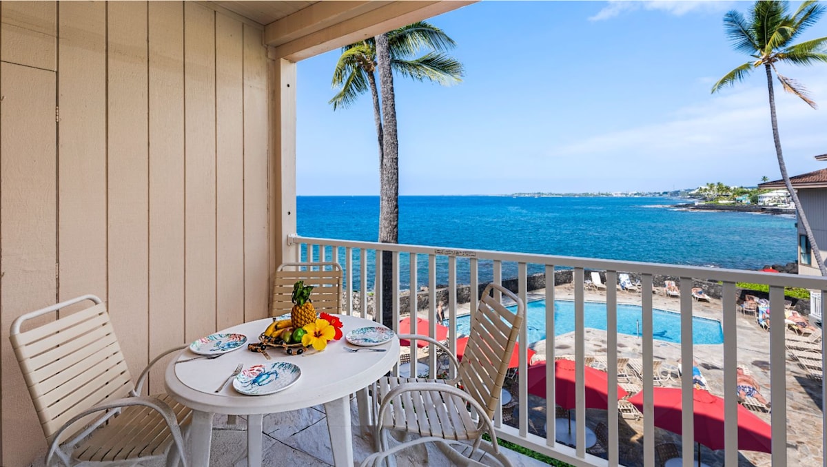 Best unit at Kailua-Kona’s popular Sea Village and one of the only with A/C! Captivating ocean views, breezes, tropical sights and sounds greet you in this easily accessible ground floor unit. Start your day on the private lanai watching the spinner dolphins and end it with a glass of wine watching sunset over the ocean. This fully updated, turn-key condo boasts open concept living and is 5 minutes to downtown. An ideal base for an individual, couple or small families to explore the Big Island!