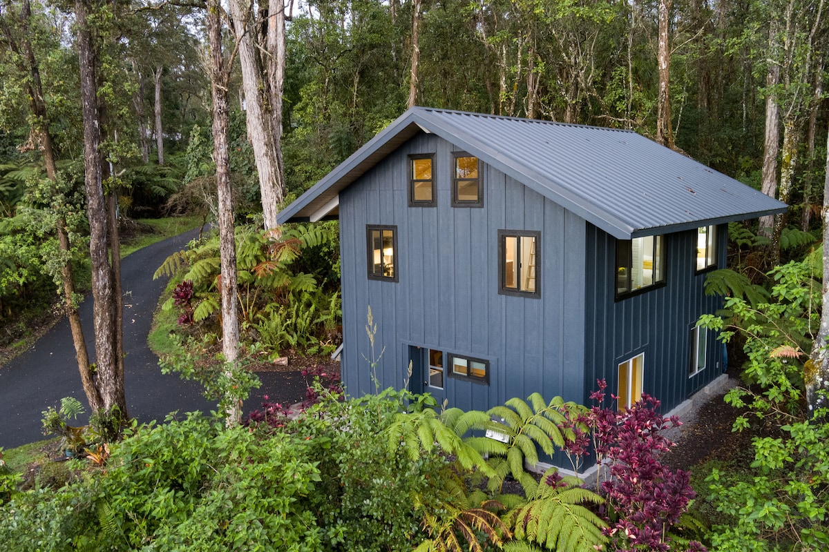 Tucked away in a peaceful native Hawaiian forest, this modern hideaway offers the perfect romantic escape just 10 miles from Kona’s beaches, airport, and town. Thoughtfully designed for couples, honeymooners, and those craving serenity, this stand-alone retreat blends minimalist style with beauty. Unwind in the private hot tub surrounded by nature, watch sunsets from the lanai, or grill under the stars. Inside, enjoy 384 sq. ft. of creative space that captures luxury, nature and seclusion.