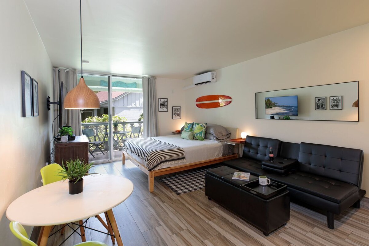 Just 10 minutes from Kona International Airport, this private studio is perfectly situated as the start for your Big Island adventure. The space is bright and airy with French doors that open to the lanai for an even more spacious feel. There is a closet, a private washer and dryer, basic amenities, a 65” smart TV, and USB outlets. There is a queen bed and a comfortable couch. Transient Accommodation License TA-018-066-6368-01