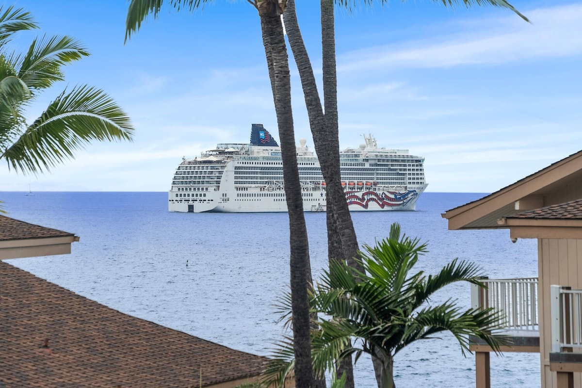 Stunning 180 degree Kona coast ocean views from this super cozy, all new 3-bedroom apartment. In the heart of Kona town, minutes to restaurants, bars, shopping, the Kona pier, famous Ali'i Dr, beaches, snorkeling, yet absolutely private and safe. Relax on the oversized lanai, grill your fresh catch on the BBQ, watch the dolphins, whales and ships. Central A/C, 65" TV, High speed Internet, XBox, lots of free parking.
