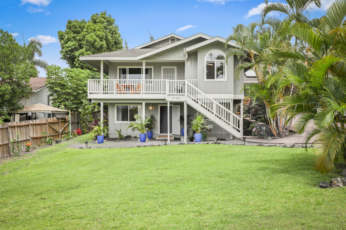 Spacious, remodeled home welcomes you to the magic of this island! This stylish home is perfect for your Hawaiian vacation. The host welcomes you to share in the majestic waterfalls, rainforest trails and other infinite delights of nature. Furnishings were carefully selected for comfort, relaxation and appeal. Enjoy a partial view of the ocean from the bedroom and living room. Located near Kona, the airport and numerous beaches.