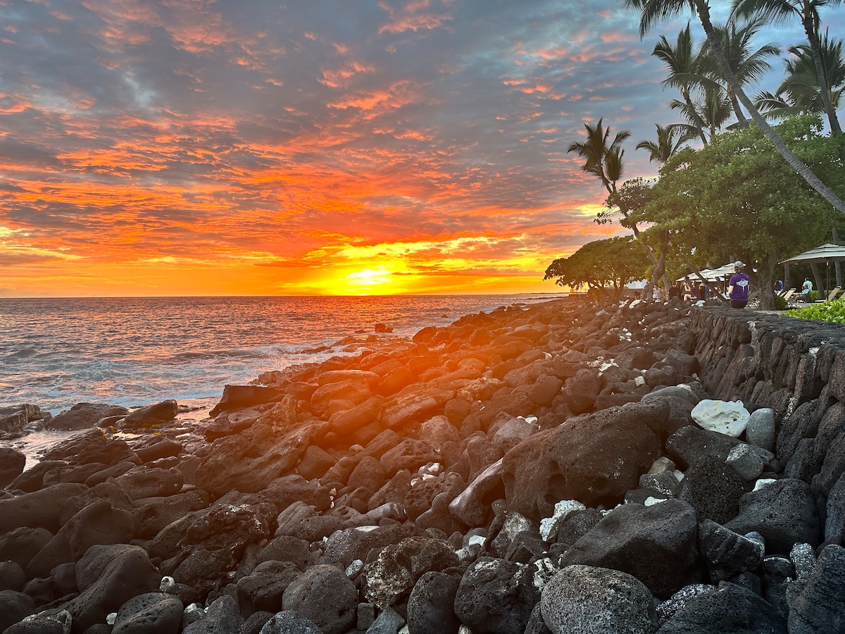 Walk to two beaches from La Caseta for gorgeous Kona sunsets and spend evenings on the lanai with a drink in hand and geckos scrambling overhead. No hard to contact agency at this legal rental, with on property owner hosts. Wood rafter ceilings, wing back rattan chairs, curated art, and tropical plants pepper the space with style. This is an older home where we rely on the trade winds and ocean dips over air-con.