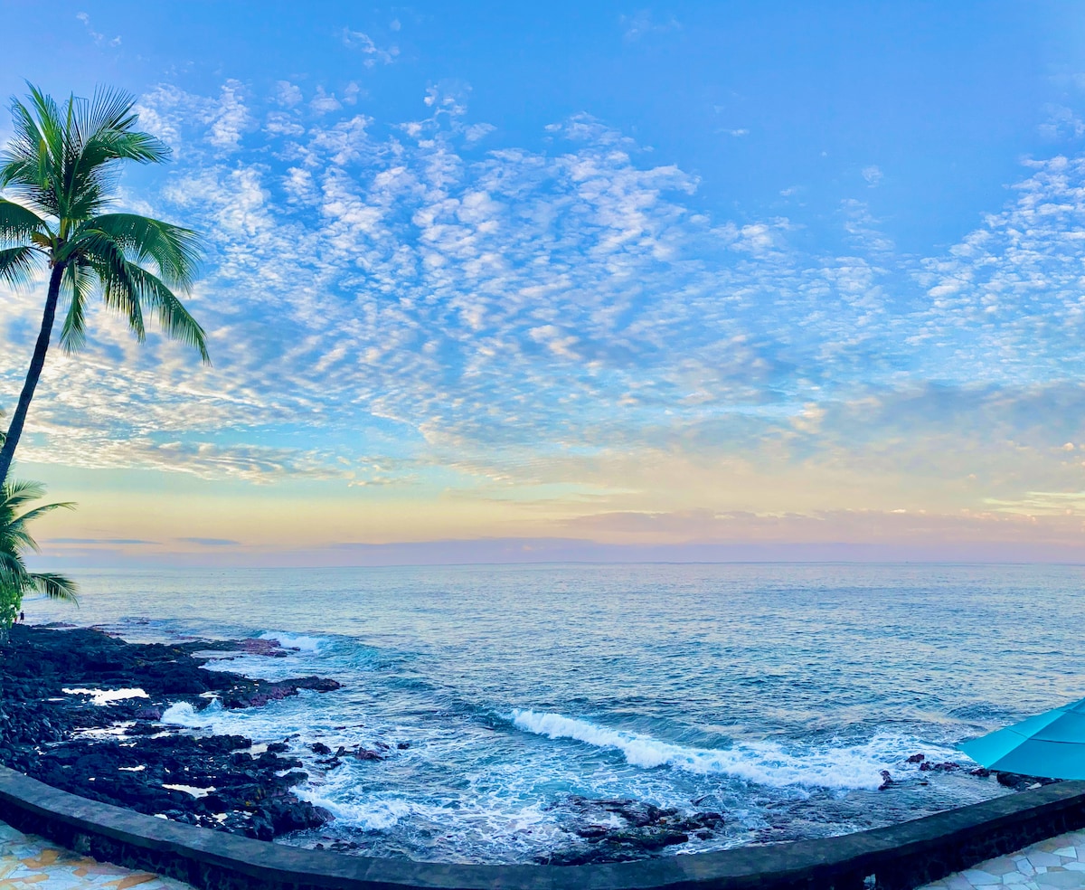 Serenity in Kona- with epic ocean views! Wake up with the ocean waves crashing below. Hang out on the lanai with some Kona coffee from the Green Flash cafe next door. You have a front row seat for whale watching during whale season. Or, hang out and enjoy the sunsets- at times with our local manta ray! We have a queen sofa bed, and AC. Close to town- an 18 minute walk. Quiet, very little road noise here. You can rent bikes too across the street.