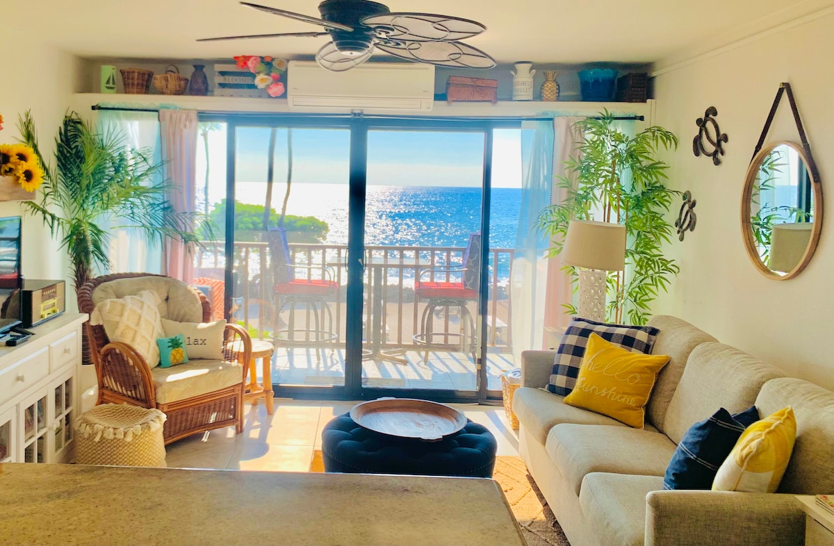 *Gorgeous views from oceanfront lanai *See whales, surfers, turtles from lanai *Beach/snorkel/surf right outside *4th Floor Penthouse w/ A/C *Stocked kitchen incl air fryer *Covered parking *Oceanfront Gas grill *Da Poke Shack in complex *Pack 'N Play/High Chair *Shared Pool w/ hot tub *Completely remodeled w/ split air unit & double vanity in master