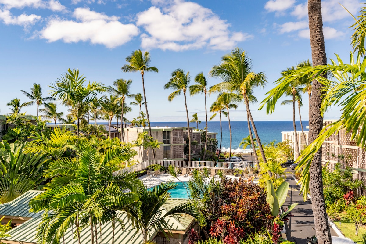 科纳市中心的Lanai,可欣赏海景和泳池景观