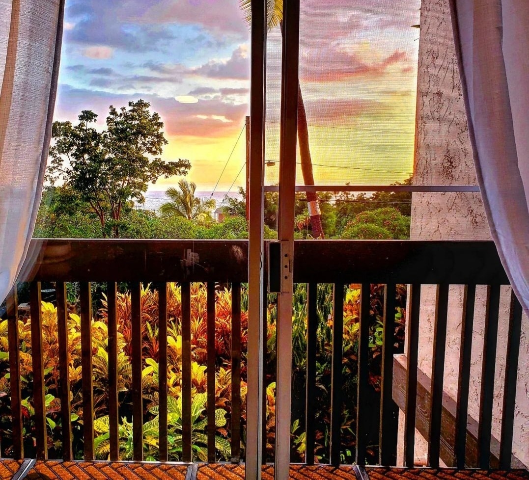 Serenity in Kona- with epic ocean views! Wake up with the ocean waves crashing below. Hang out on the lanai with some Kona coffee from the Green Flash cafe next door. You have a front row seat for whale watching during whale season. Or, hang out and enjoy the sunsets- at times with our local manta ray! We have a queen sofa bed, and AC. Close to town- an 18 minute walk. Quiet, very little road noise here. You can rent bikes too across the street.