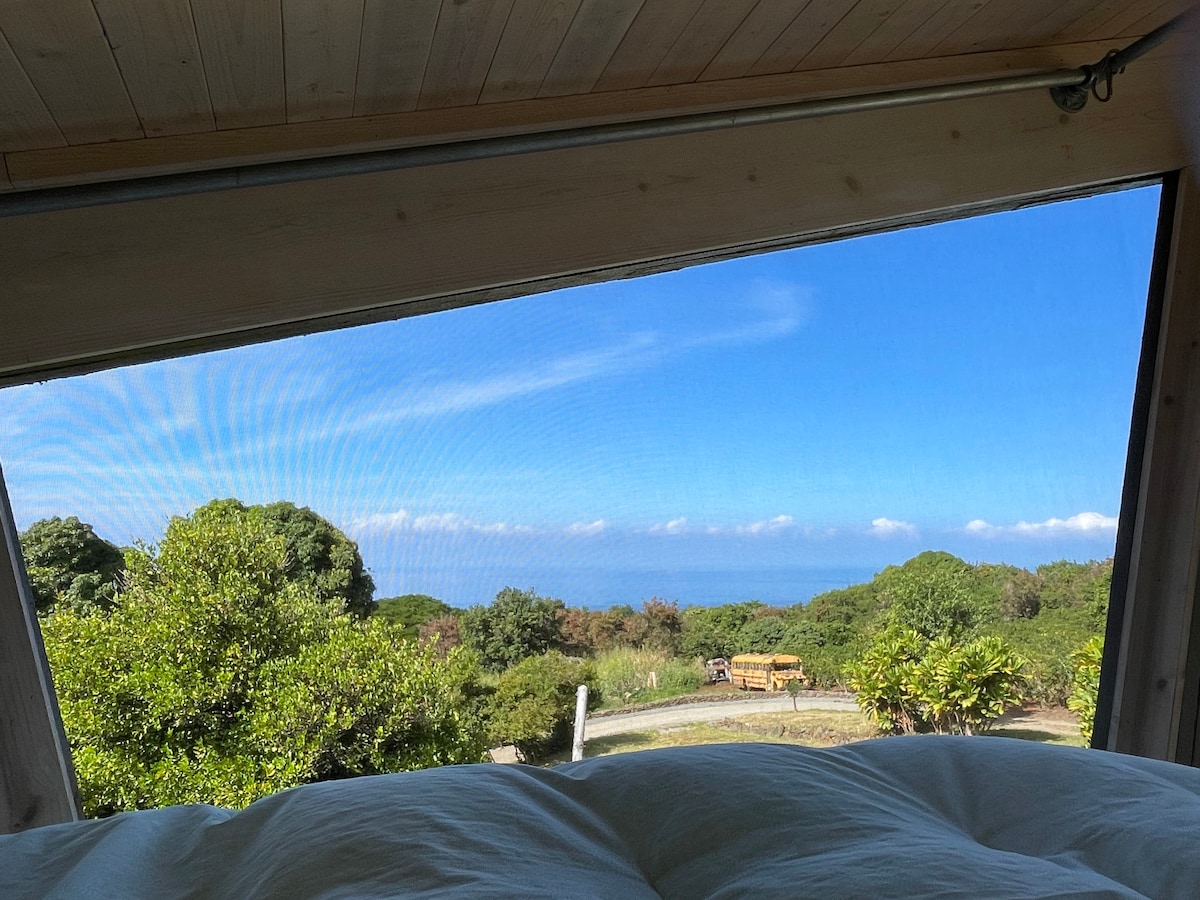 If you like nature and animals, come and enjoy our hobby farm! It's glamping in a tiny house with the incredible view. (It is a farm, not a hotel) The loft bed with ladder as picture shown. Screened/no windows so you can enjoy breeze and view. Cute living room and big shower/restroom down stairs. Patio with outdoor grill and sink. Beautiful sunset and infinity sea/sky line from the bedroom. Galaxy and shooting stars at the night. About 20mins from many beaches, and downtown.