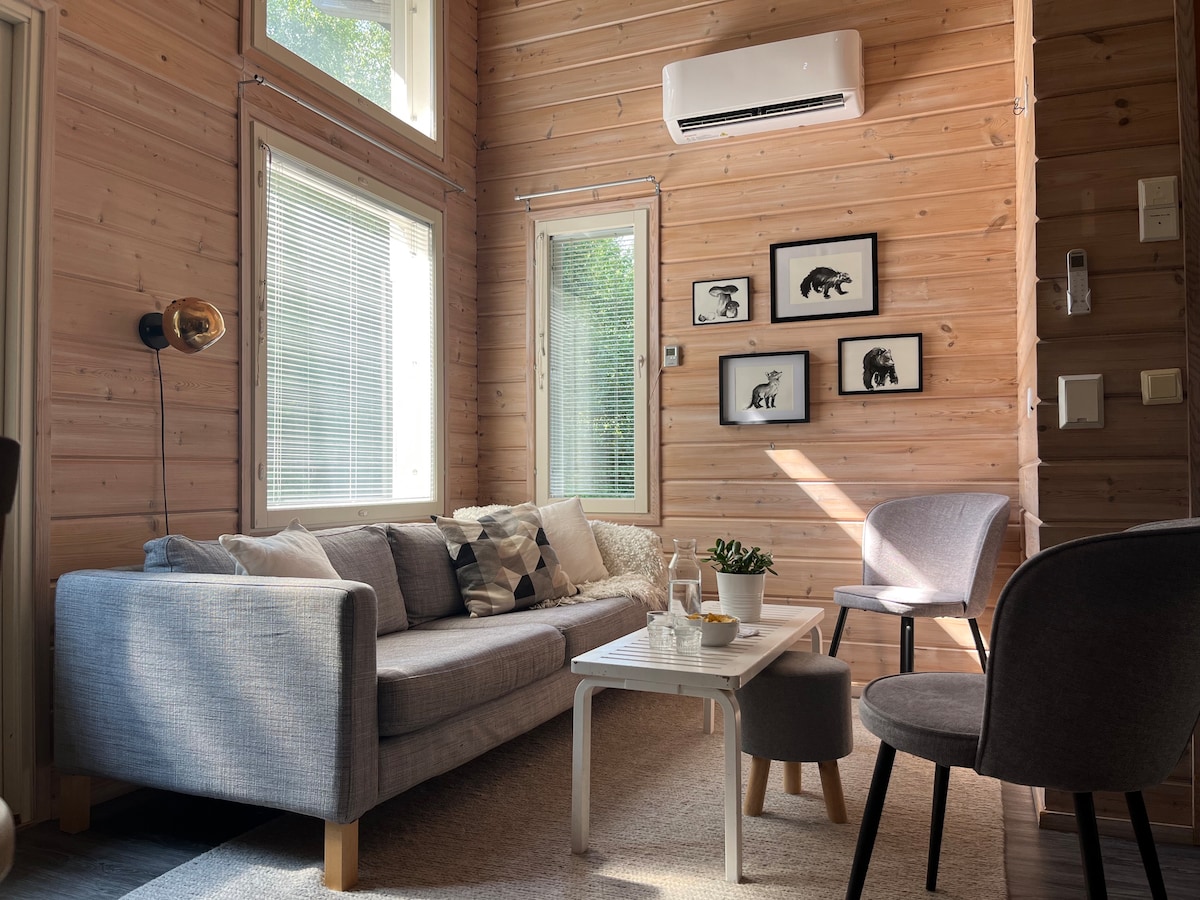 Escape to a lakeside log cabin just 10 km from town. Enjoy peace and nature with modern comforts: sauna, kitchen, fireplace, private beach, dock, and rowing boat. Pets welcome. EV charging available for a fee. Explore ski centers, trails, and slopes, or relax with included firewood. Free mobile WiFi keeps you connected. Final cleaning/linen not included but available for a fee. Nearby cottages are rarely used, ensuring a quiet stay.