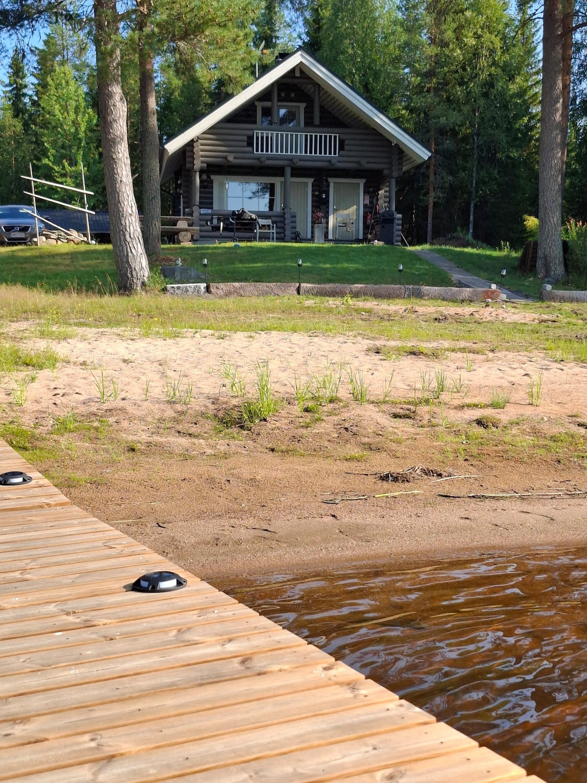 Log cabin located on the shore of the lovely Lake Oulujärvi. Well-equipped kitchen, separate dining area, two bedrooms, both with double beds. Upstairs with three beds. Two toilets, electric sauna and shower. Two air source heat pumps for cooling and heating. Fireplace-baking oven. The beach cottage has a bunk bed, table group and loft. For sleeping use only in summer. Summer kitchen and pizza oven.