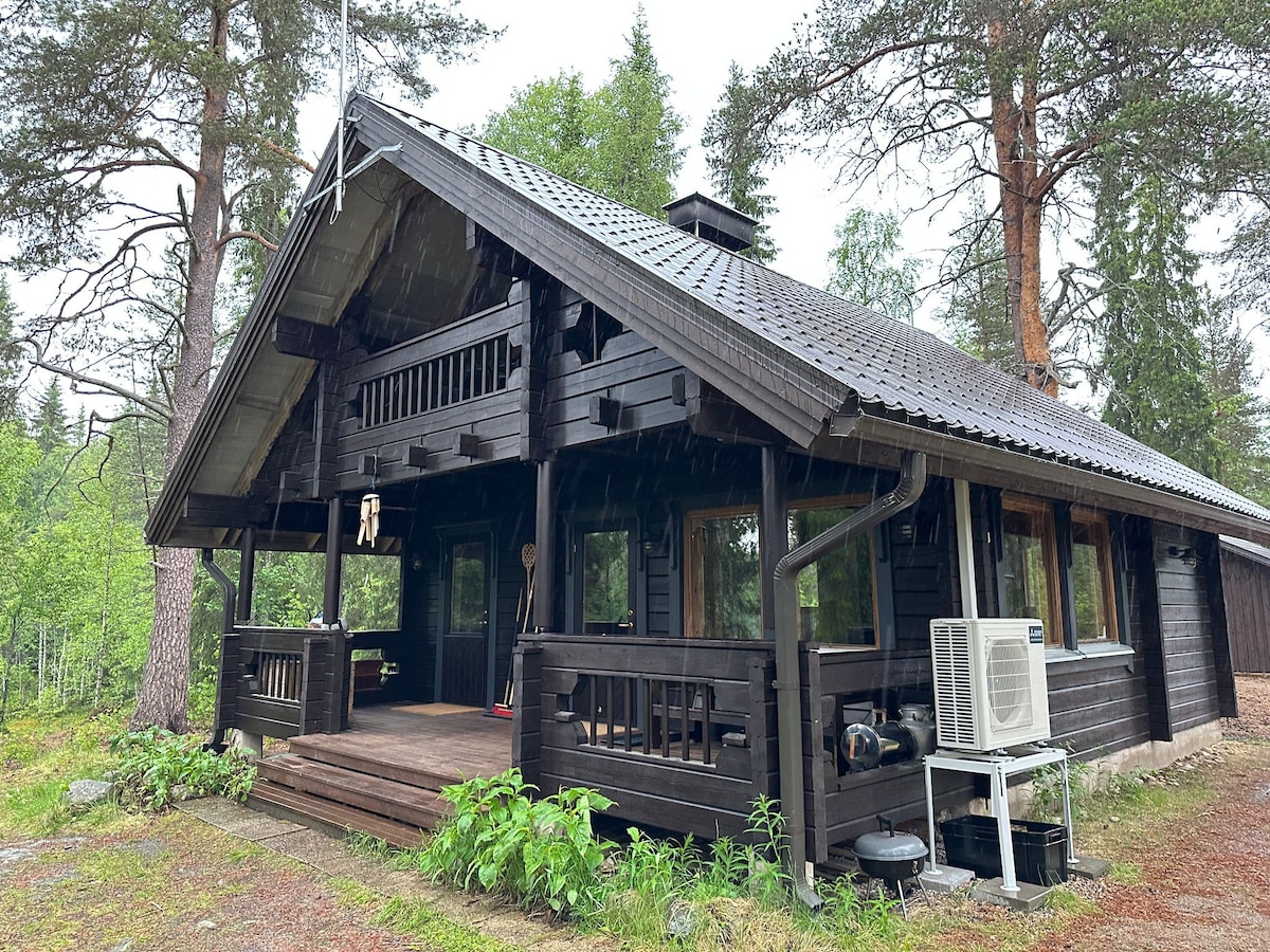 Well-equipped log cabin by a lake, 10 km from the village. Enjoy nature’s peace and a private beach with modern comforts. Great terrain for hiking, berry picking, and hunting nearby, plus skiing and snowmobile trails. The UKK trail starts close by. Ukkohalla & Paljakka are 40 min away. Includes a lakeside sauna, pier, rowing boat, and BBQ hut with firewood. Pets welcome. Peaceful location – the perfect place for year-round relaxation.