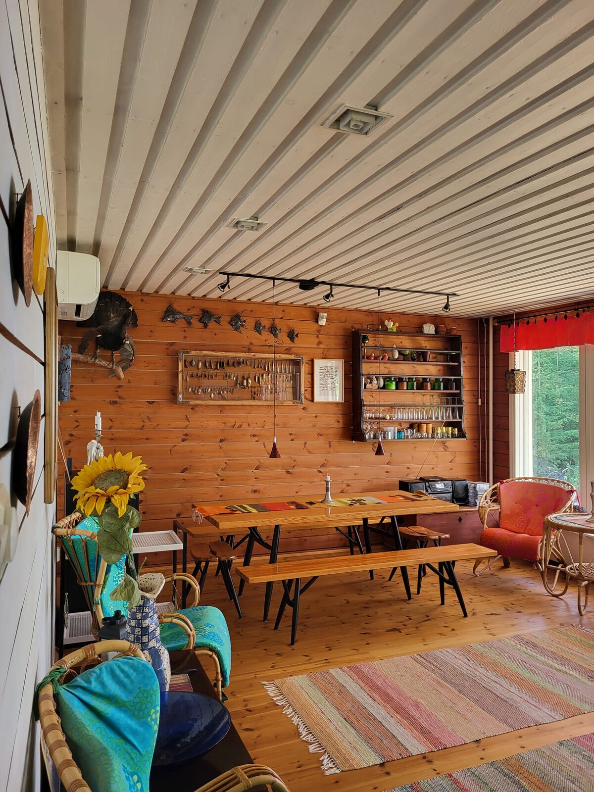 Nyt ois tarjolla yksinäisen kalastajan unelmakohde. Ei ole pilattu nykyajan mukavuuksilla sen enempää, ku että saa jääkaappiin sähköt. Ja puhelimen tarvittaessa ladattua. No ehkä syksyn pimetessä voidaan tuoda tänne ihan sähkövalokin... Ulkohuussi on ja juomaveten saapi hakea naapurista. Lämpöä antaa porinmatti ja saunaan saa nostaa ämpärillä veden järvestä. Mahdollista myös vaihtaa tuo pallorilli kaasu käyttöiseen. Lisäys. Kahvinkeitin ja mikrokin varustukseen järjestyy.😉