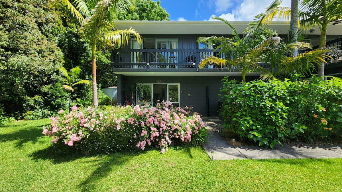 This Balinese inspired apartment with views over the pacific ocean from both the living area and bedroom, only steps from the beach, cafes and in close proximity of two other beaches, wonderful walks, the boat ramp, a golf course, village markets, wineries and so much more. Tucked away down a cul de sec it is a very relaxing place. Views over the palm gardens and out to sea, ideal for a get away for two. Included is linen, towels, tea/coffee and the cleaning service.