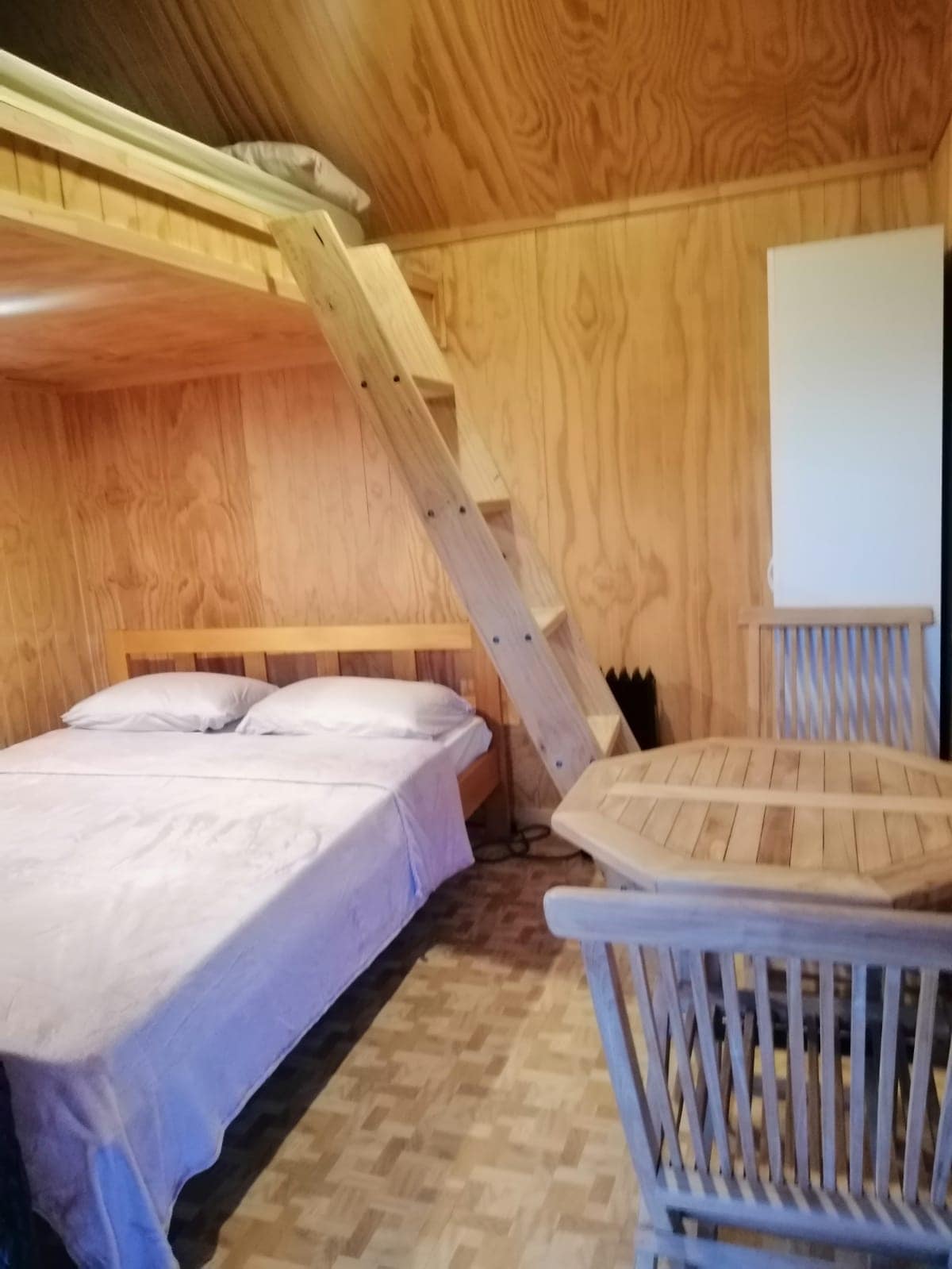 This is a 1 bedroom cabin with a queen. Duvet and pillows. There is also a pullout sofa bed. It is a place to get away from the hustle and bustle. It is run on gas and solar power. There is no TV or microwave. Leave behind your hair dryer and hair straighteners and enjoy the privacy, peace and view. There is a BBQ available. Linen can be provided for a fee. 1st 2 guests are $100 per night then $10 per head per night after that. We are happy to provide a tent for kids to sleep in out on the lawn.