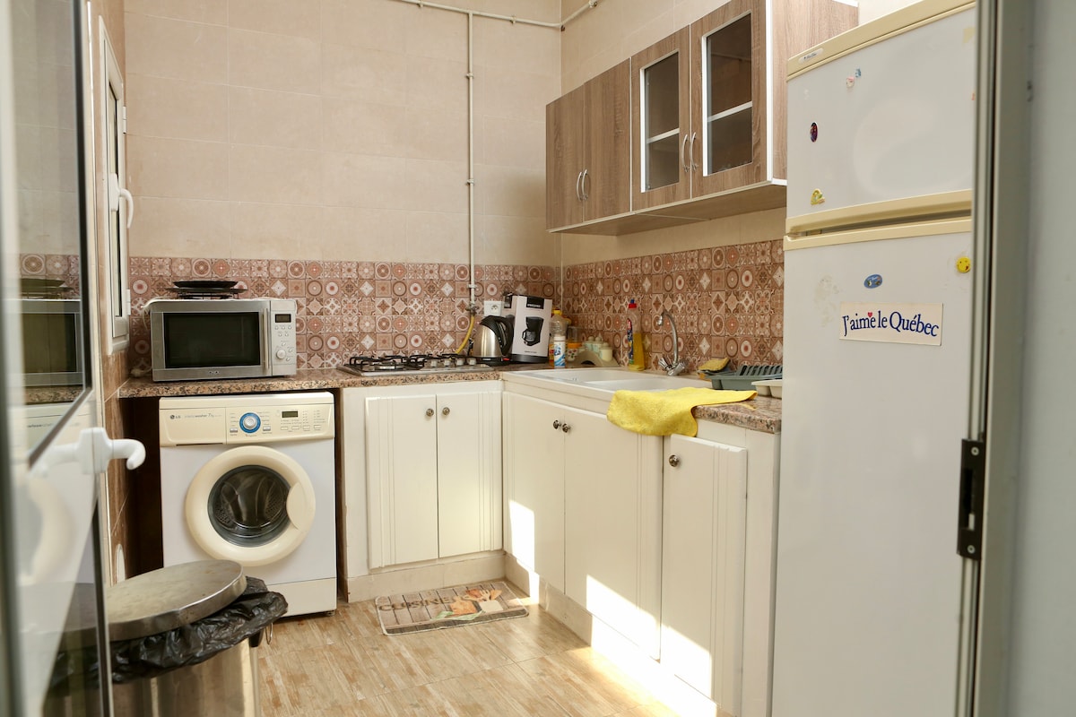 🏠 Spacious & Sunny! This 2-bedroom haven fits 4 guests with: ✔ 2 bright rooms 🛏️ ✔ 2 AIR CONDITIONERS ❄️🔥 ✔ Tree views 🌳 ✔ Kitchen 🍳 🚀 Bonuses: ✔ Shared garage (car/motors) 🚗 + tools (washer, iron, Baby crib bed) ✔ 5 mins to Medina 🏰 • Workspace 💻 • AC/Heating ❄️🔥 ✔ Warm water 🔥 + treats 🍬 + travel e-books 📚 ✔ LED speaker 🎶 • 24/7 security 🔒 ✔ Outdoor Parking Option: Safe parking UNDER SURVEILLANCE 🎯 Perfect for: Families, remote workers & big groups