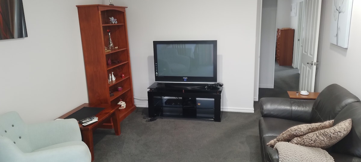 Enjoy the best Papamoa has to offer in our comfortable private guest wing in a safe, quiet neighbourhood, a short walk from the beach. The guest wing is located down a hallway at one end of our home, separated by a screen and is for your exclusive use only. You will also have your own private entrance via the kitchenette. Whether you’re coming for a short beach break, event at nearby Baypark, or an extended stay, we’d love to welcome you.