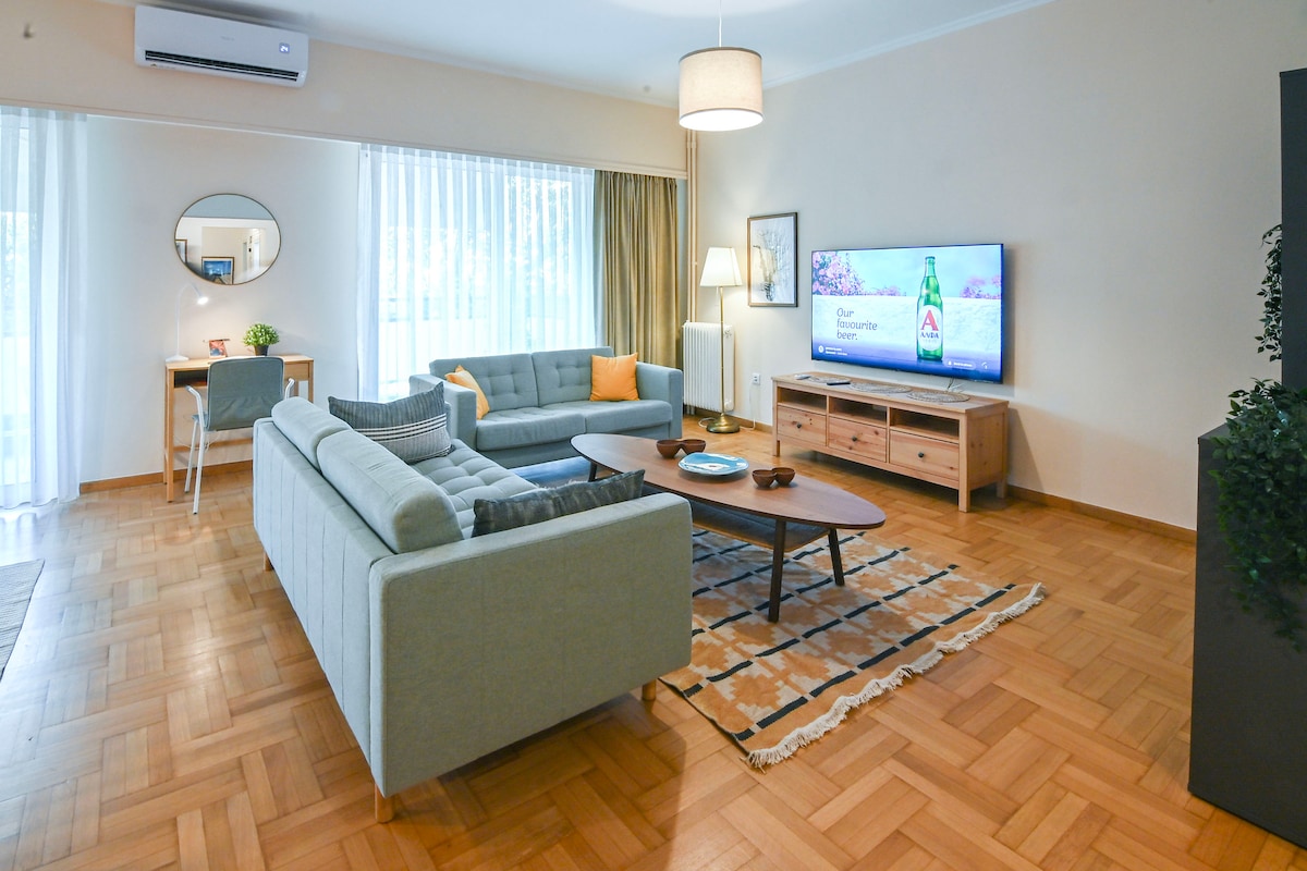 The Veranda is a luxurious, high aesthetic and modern 2 bedroom aprtm. with a super spacious, long and shaded veranda. Ideal choice for couples, families, solo and business travelers seeking absolute comfort. Located in one of the most beautiful and safe areas of Athens, next to Panathenaic Stadium, 4 minutes walking from the Presidential Mansion and the National Garden, 8 minutes walking from Kolonaki sq, 12 minutes walking distance from Syntagma square and in walking distance from Acropolis