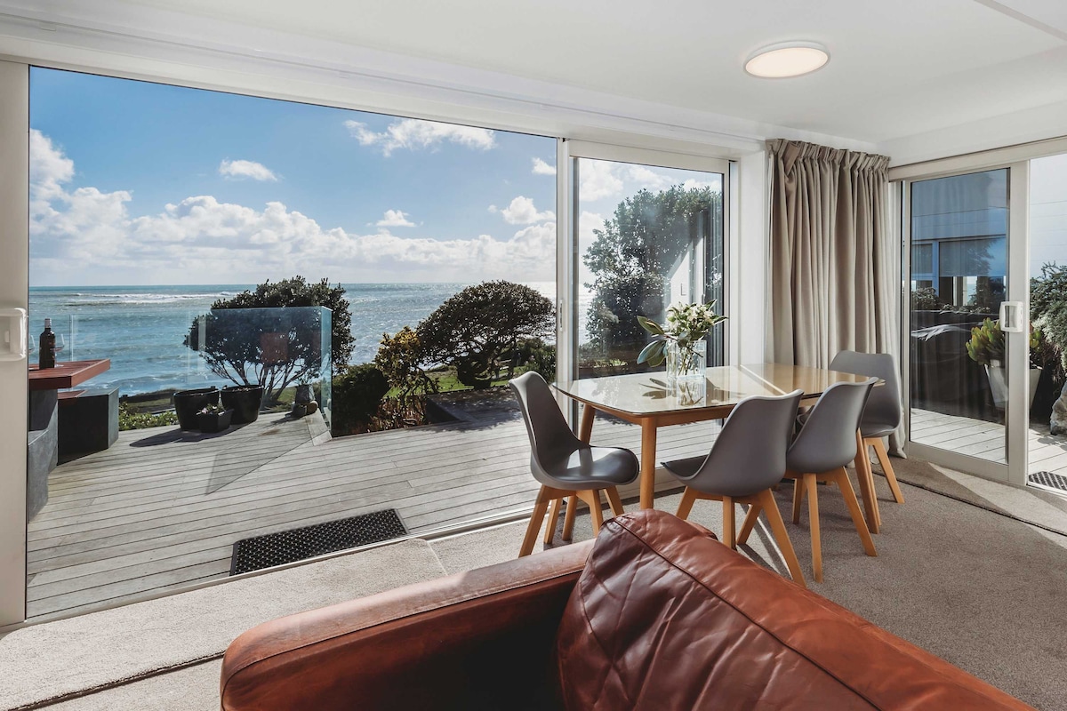 Architectural Luxury Retreat with Breathtaking Ocean & River Views Unwind in this stunning, architecturally designed escape, featuring uninterrupted views of the sea and river. Enjoy the warmth of an outdoor fire and wood-fired pizza oven, perfect for evenings under the stars. Inside, you'll find beautifully curated interiors with a boutique feel. Nestled in peaceful surrounds, yet only 2 minutes from Ōākura and its world-class surf beach, and just 15 minutes to New Plymouth. Fast Wi-Fi.