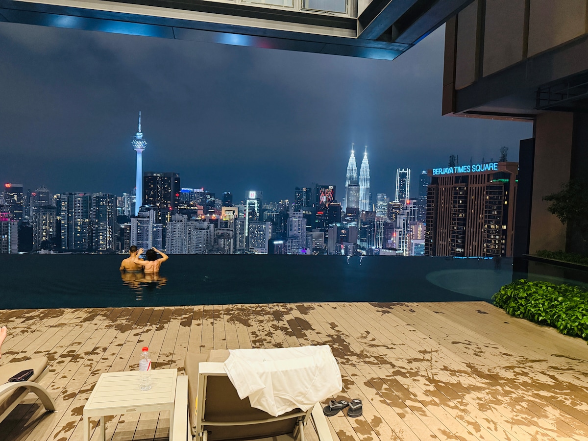 全景2卧套房,可欣赏吉隆坡城中城美景,配备无边泳池