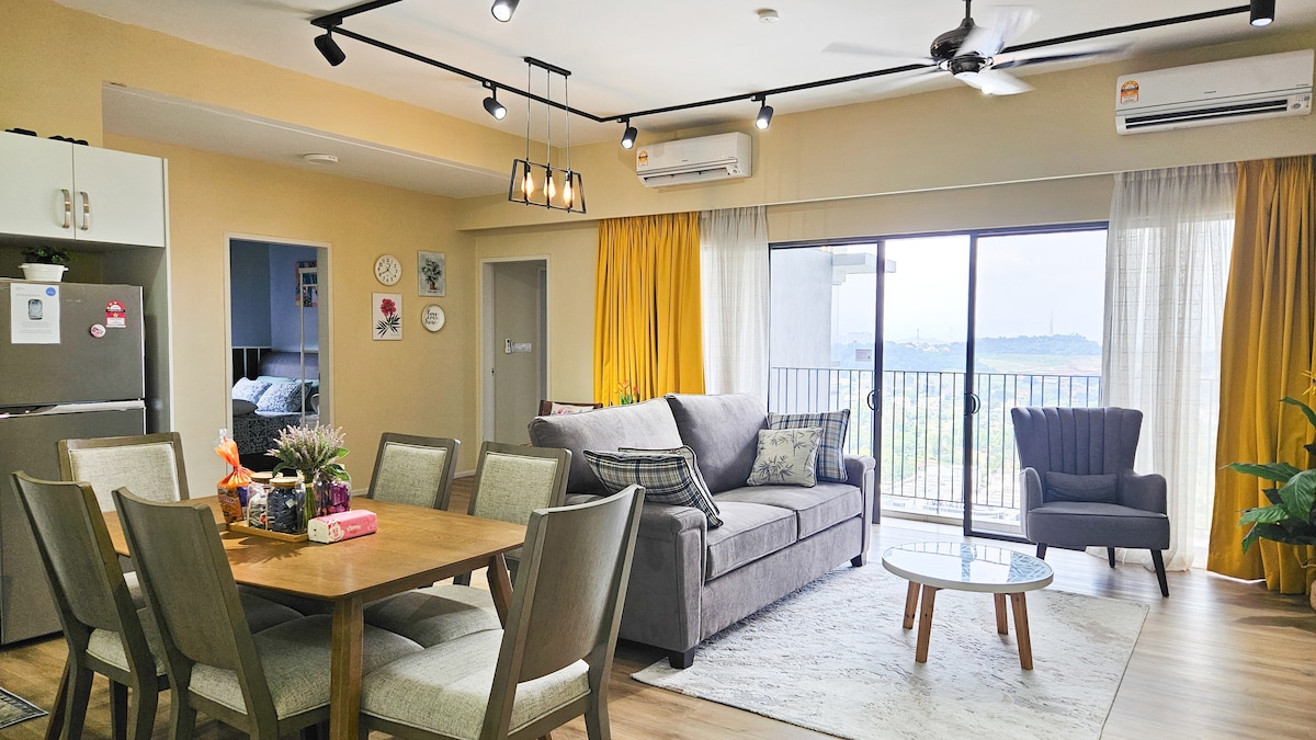 Relax with the whole family, Spacious 3R2B Accommodation to stay in Kajang. Guests enjoy free WiFi, air-conditioning, 3 temperature water filter (AIHAA) and a washing machine. The fully equipped kitchen includes a electric stove, refrigerator, microwaves and electric kettle. Additional amenities include a dining area and dining table. 2 free on-site private parking, lift access, family rooms, and full-day security. Located 1 km from UKM, GMI and adjacent to Bangi area