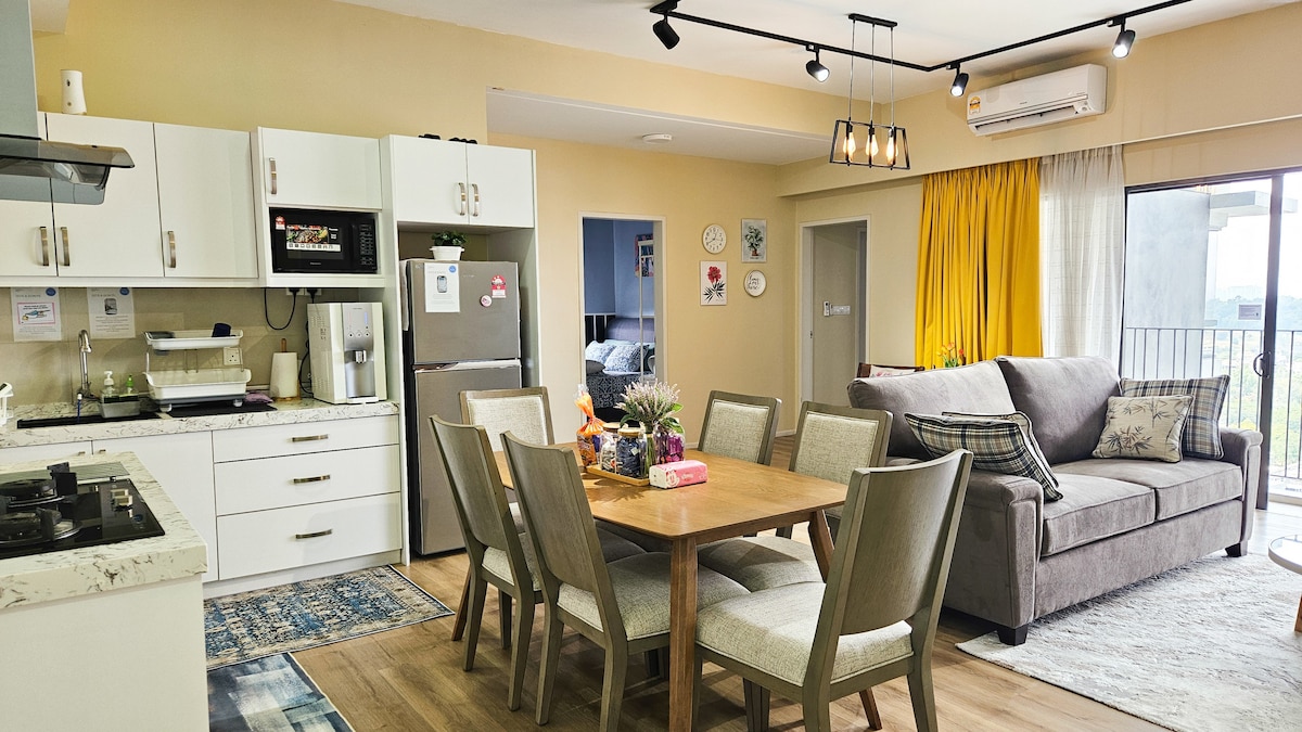 Forget your worries in this spacious, serene SOHO apartment located in the heart of Mont Kiara. Perfect for families, couples, or business travelers, this cozy space offers modern comfort, full amenities, and unbeatable convenience.
