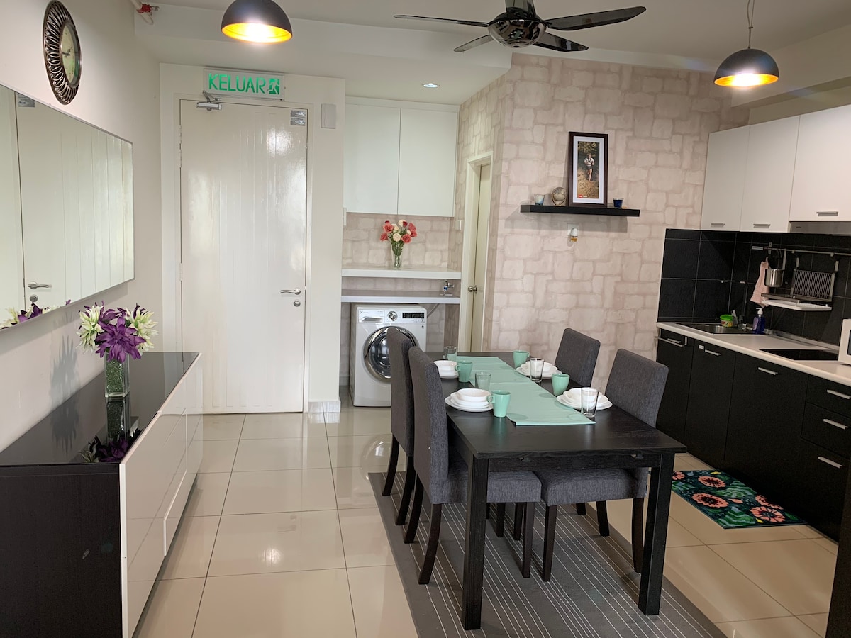Our Grand Loft is packed with all sorts of amenities and facilities that you'll ever need! We are furnished with premium quality furnitures , entertainment unit (Karaoke) and exquisite finishing that gives not only more value but also your experience staying here. We are located just 15 minutes away from the CBD, 5 stops away from Bukit Bintang (Pavillion) & 6 stops away from KLCC by train. We are strategically located with a 4 minutes covered walk through the mall to the MRT station at lv 1