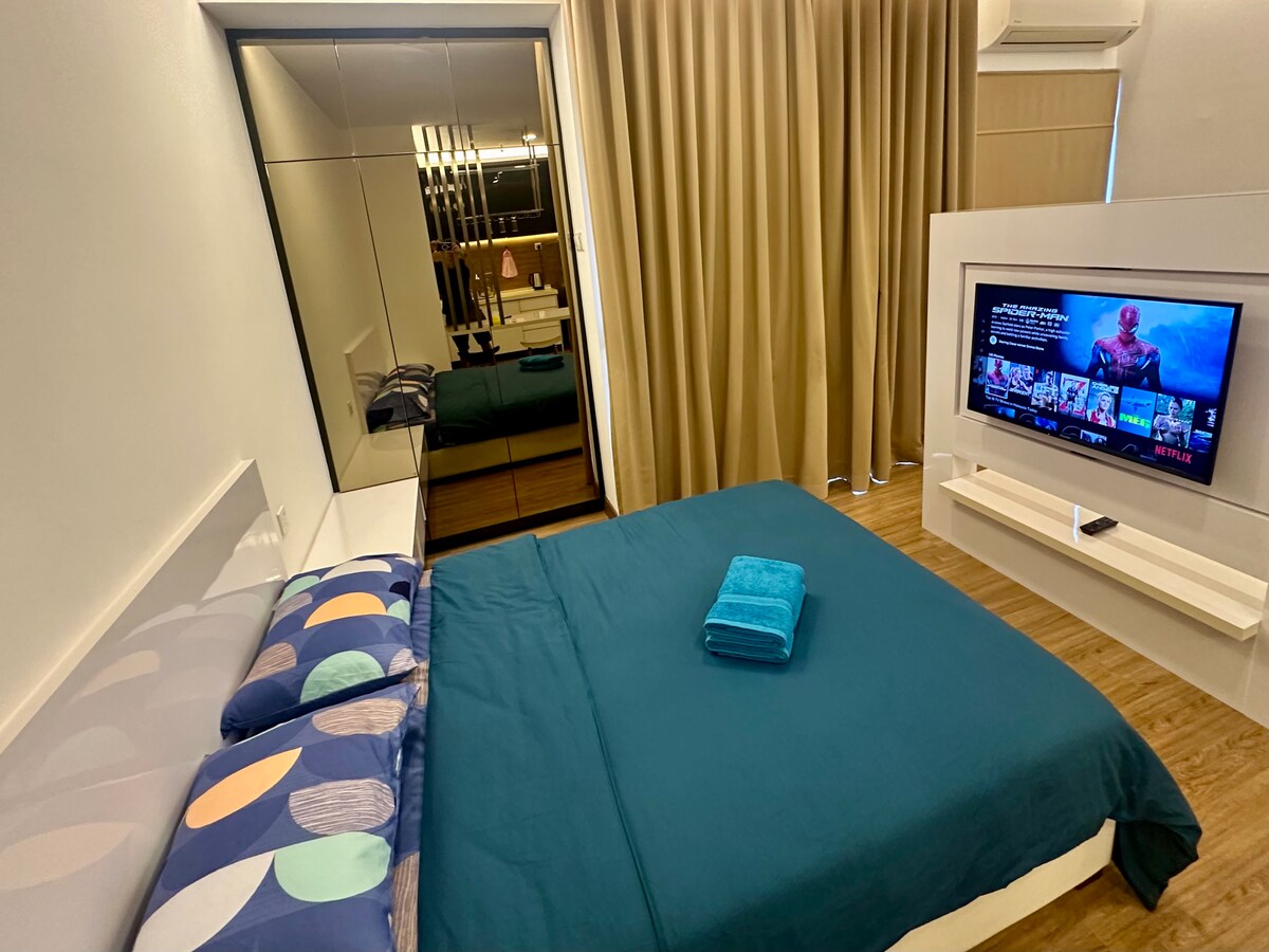 A cosy duplex on the highest floor of the building (Level 21), with a queen bed and a 3-seater sofa. Suitable for both short- and long-term stays. The building is in De Centrum Mall, with shops such as Super7 (supermarket), Mr. DIY, Watsons, and 7-Eleven among others, and facilities like launderettes and a clinic (Poliklinik MyMedik). •Check in time: from 3PM •Check out time: 12PM