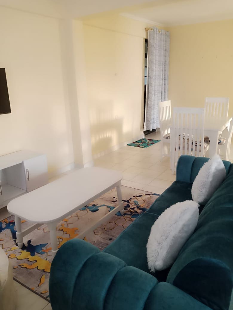 Welcome to this stylish and chic apartment at Kisumu Terrace Apartments in Mamboleo, perfect for business travelers, couples, or solo adventurers. Enjoy a serene ambiance with modern decor, smart entertainment, and a private balcony overlooking lush greenery. Features & Amenities: 1. Spacious living area with Smart TV 2. High-speed WiFi 3. Elegant African-inspired decor 4. Fully equipped kitchen for home-cooked meals 5. Cozy balcony seating with beautiful views 6. Secure & quiet location
