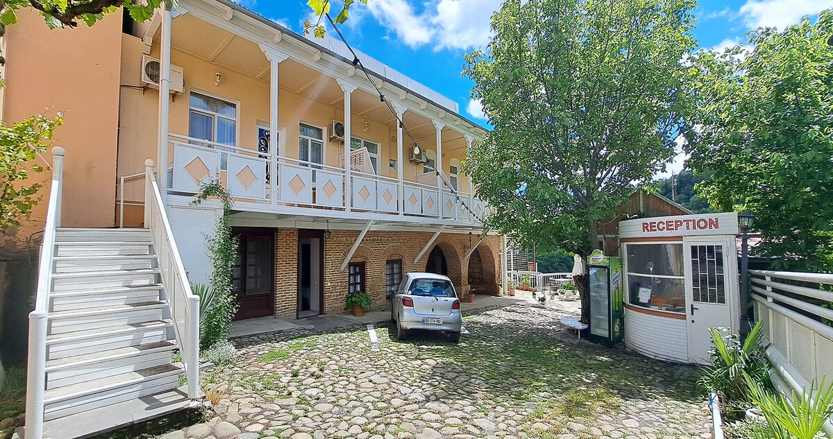 The room is located in an old Georgian ethnic house, surrounded by the spurs of the Caucasus Mountains, located next to the Lagodekhi Reserve